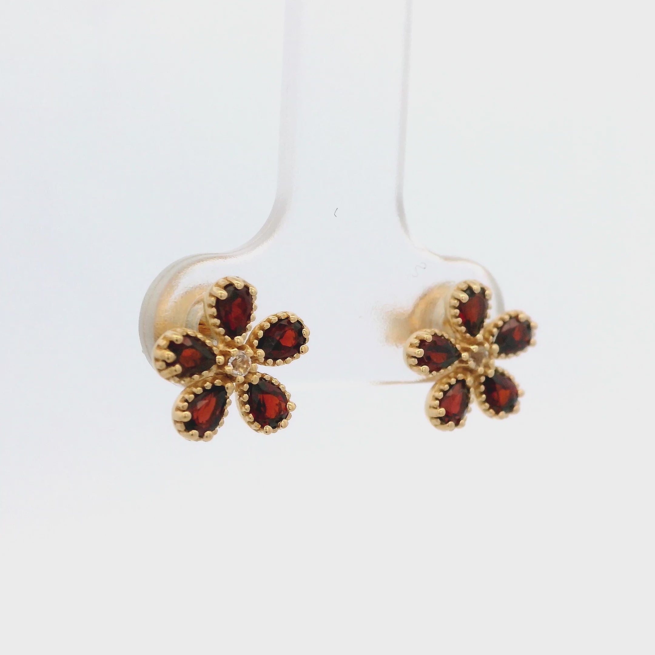 925YG FLOWER GARNET CENTER TOPAZ WHITE EARRINGS