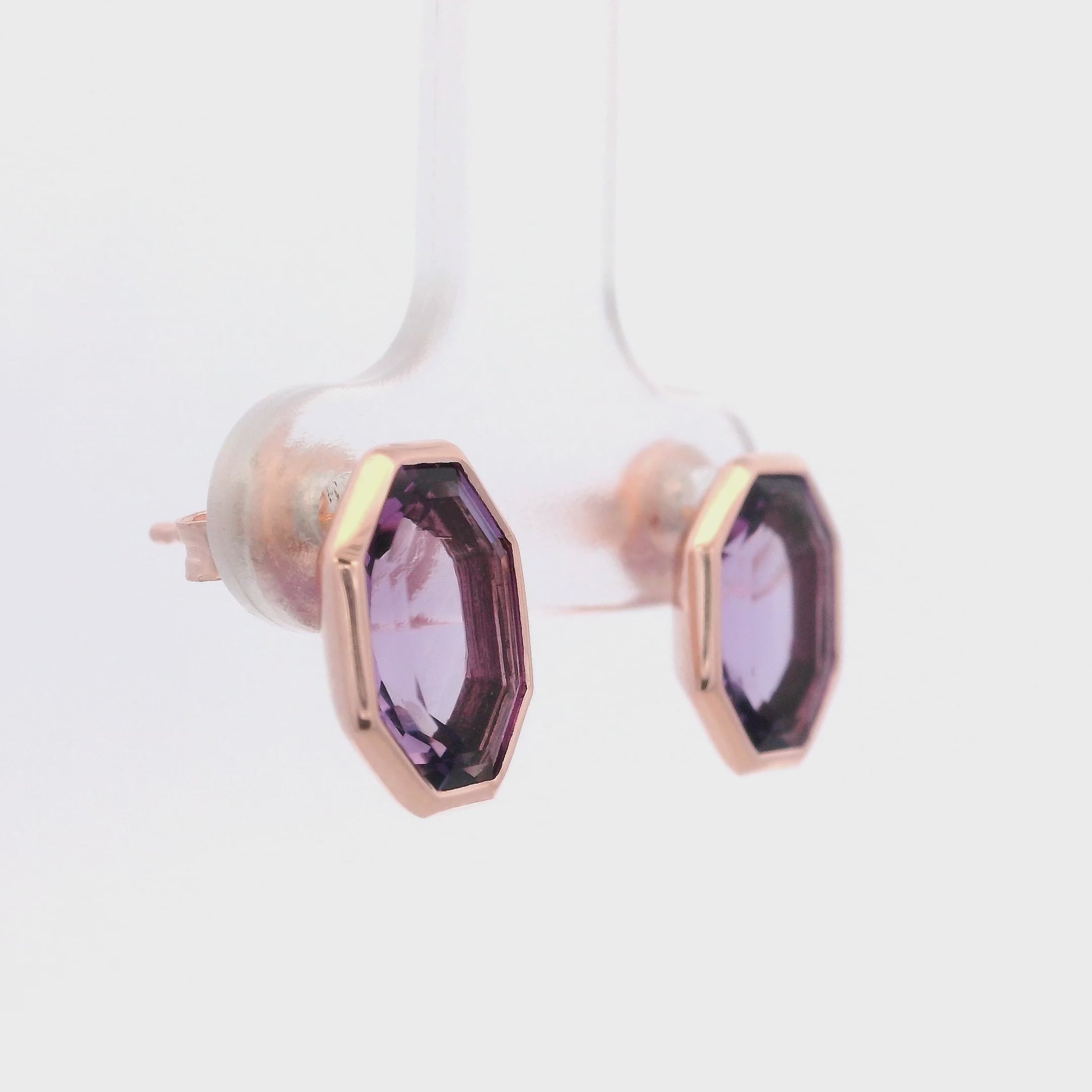 Aretes Hexagonales de Amatista con Engaste de Bisel en Plata 925 Bañada en Oro Rosa.