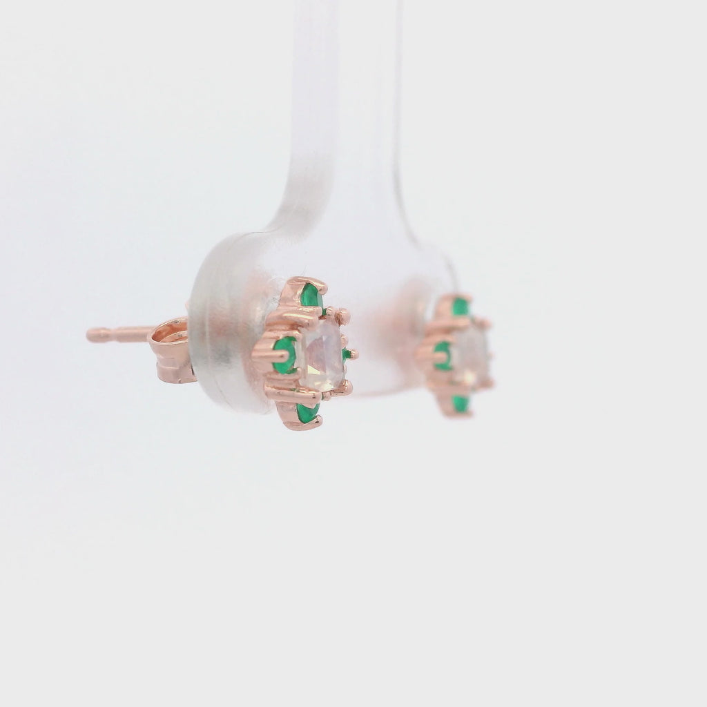 Aretes de Piedra Luna Cuadrada y Puntas de Ónix Verde en Plata 925 Bañada en Oro Rosa.