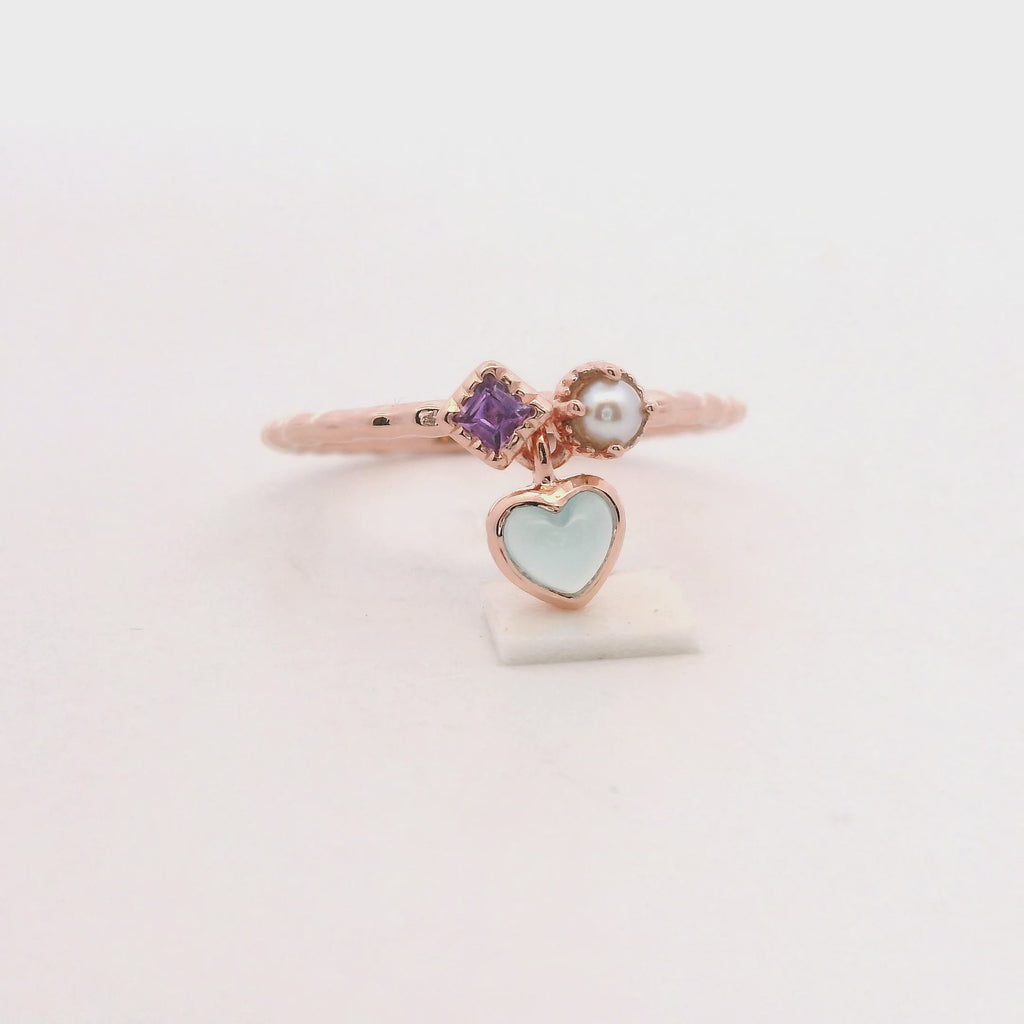 925RG PEARL AMETHYST AND MINI HEART CHALCEDONY RING T6.5