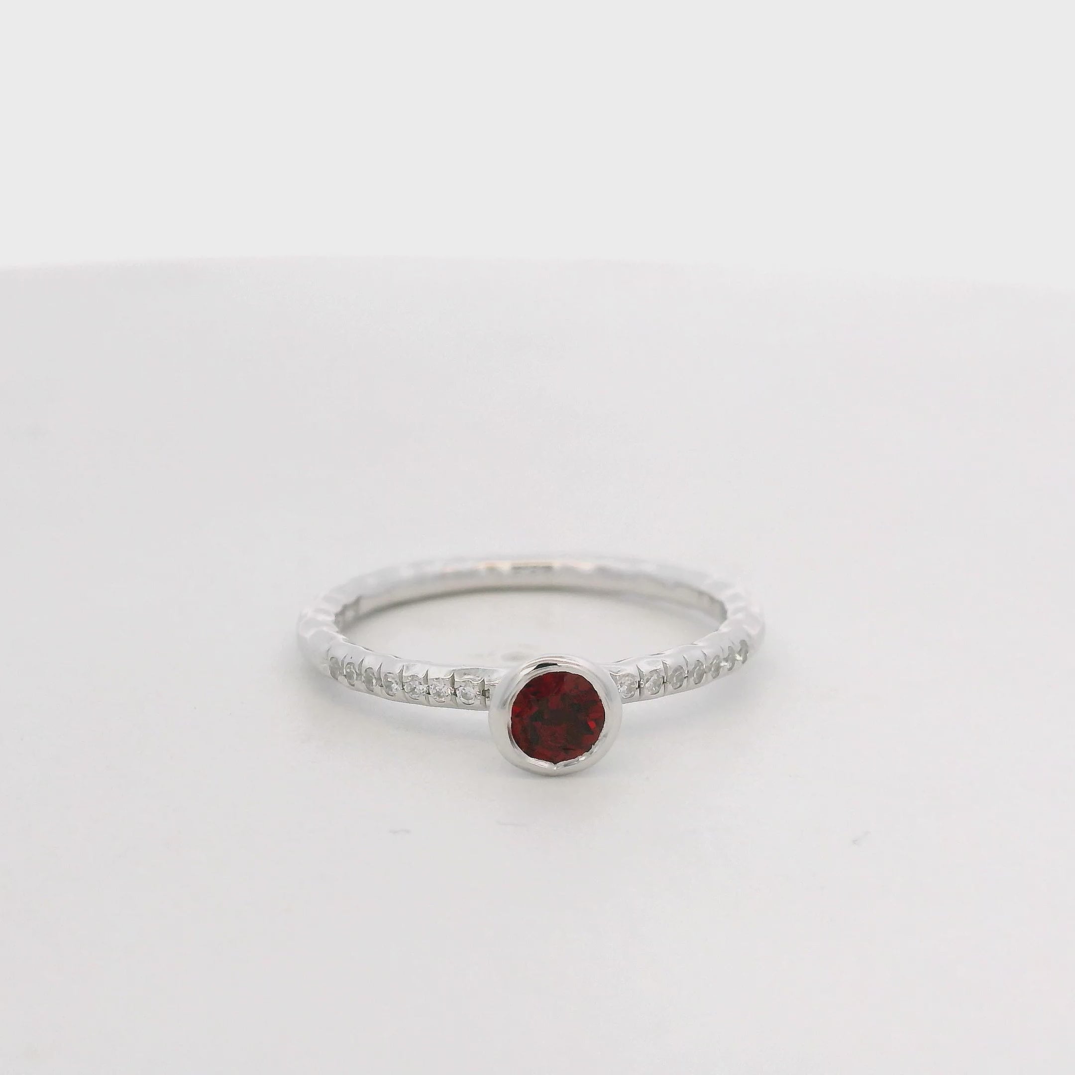 En resumen, se trata de un anillo de plata 925 que combina un granate rojo intenso en engaste de bisel con el brillo de las circonitas cúbicas, todo en talla 6.5.