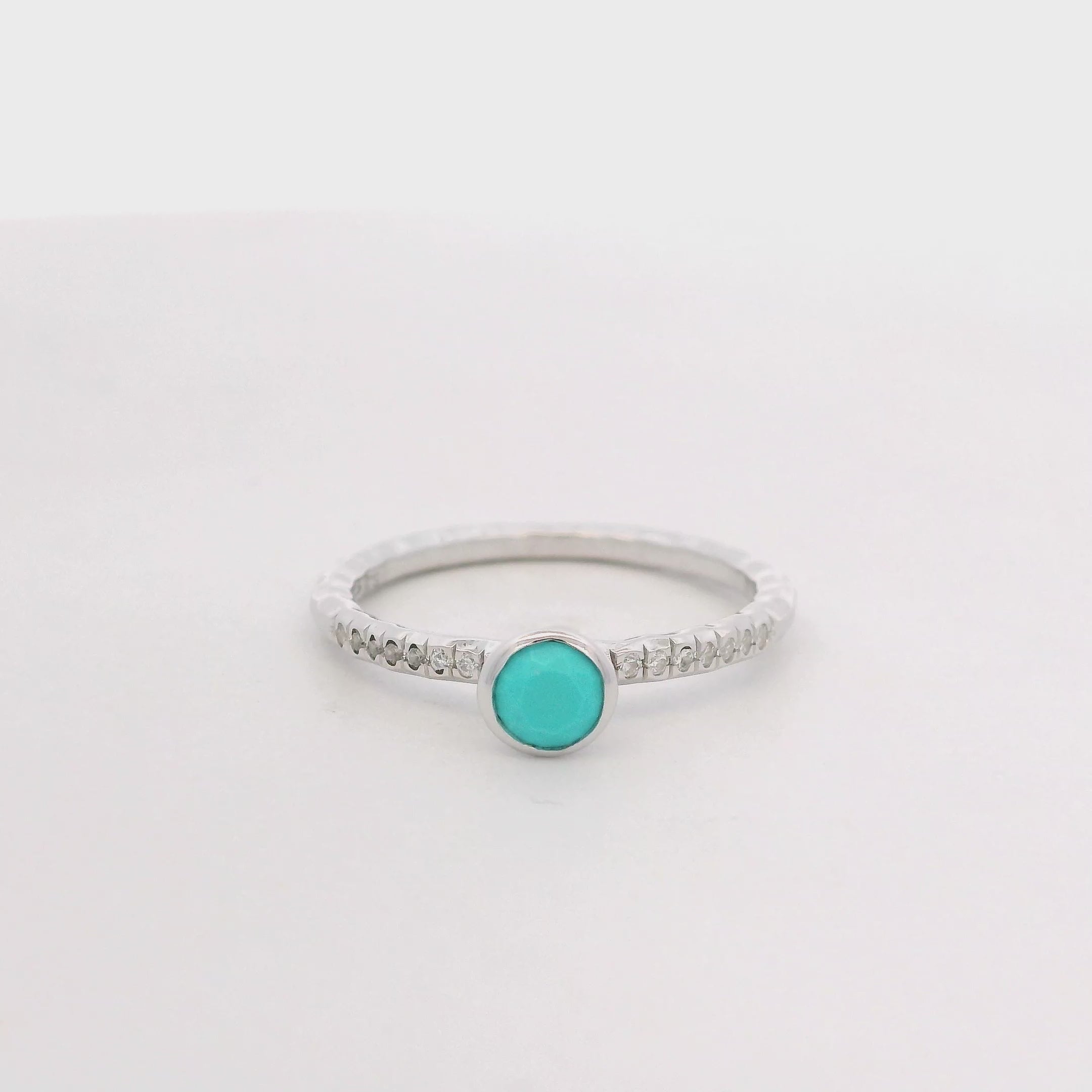925SL BEZEL TURQUOISE SYN AND CZ RING T6.5