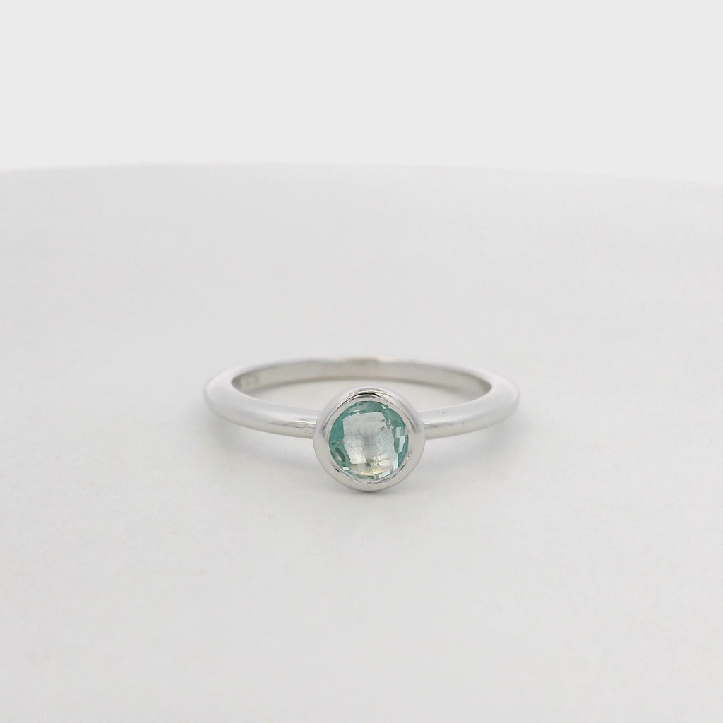 En resumen, se trata de un elegante anillo de plata de ley con un único topacio azul engastado en bisel, todo en talla 6.5.
