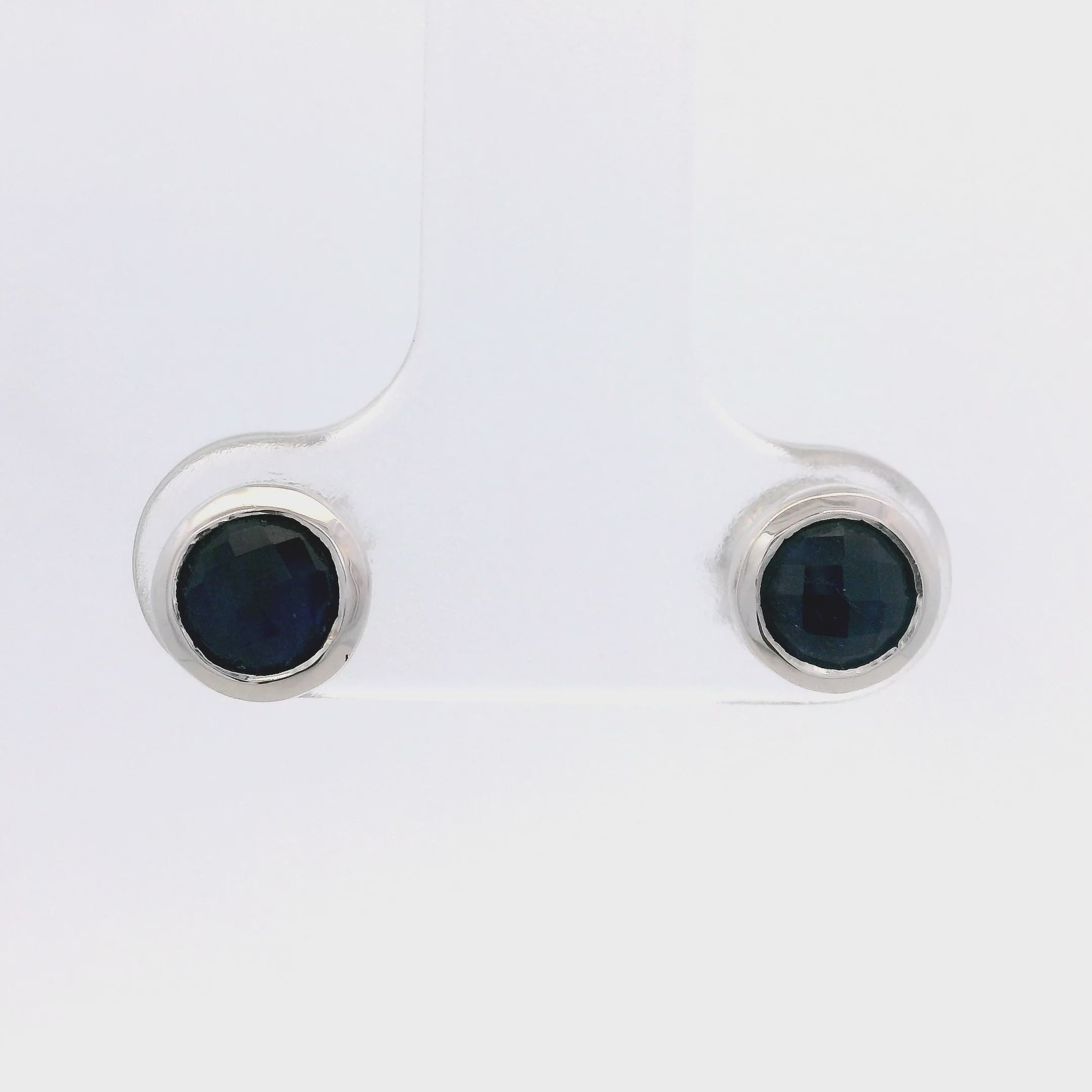 925SL STUD BEZEL SAPPHIRE GLASS FILLED EARRINGS
