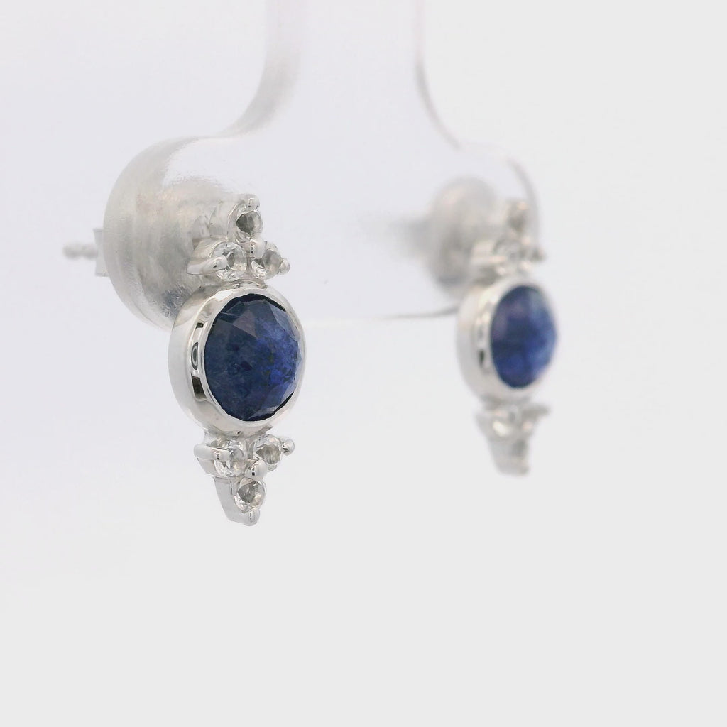 Aretes de Plata 925 con Bisel de Cristal de Zafiro Relleno de Puntas de Topacio Blanco.