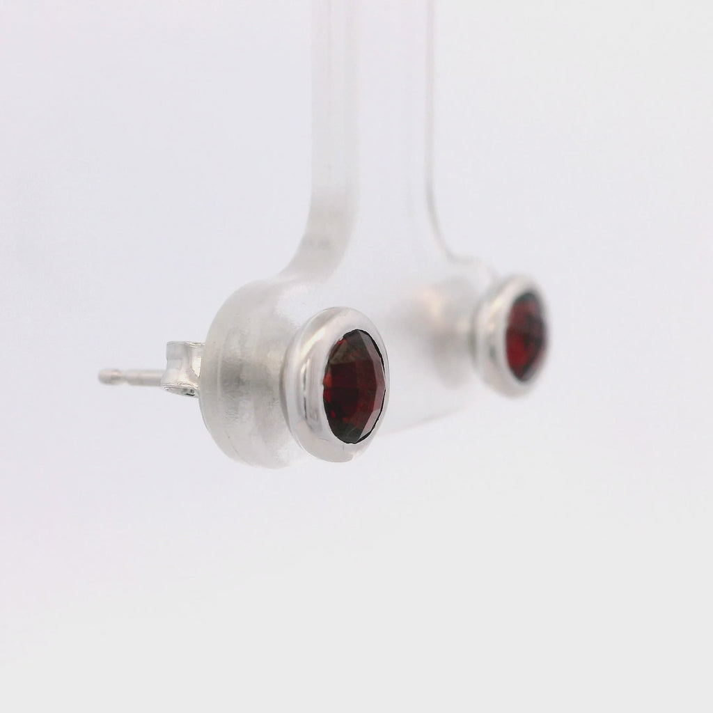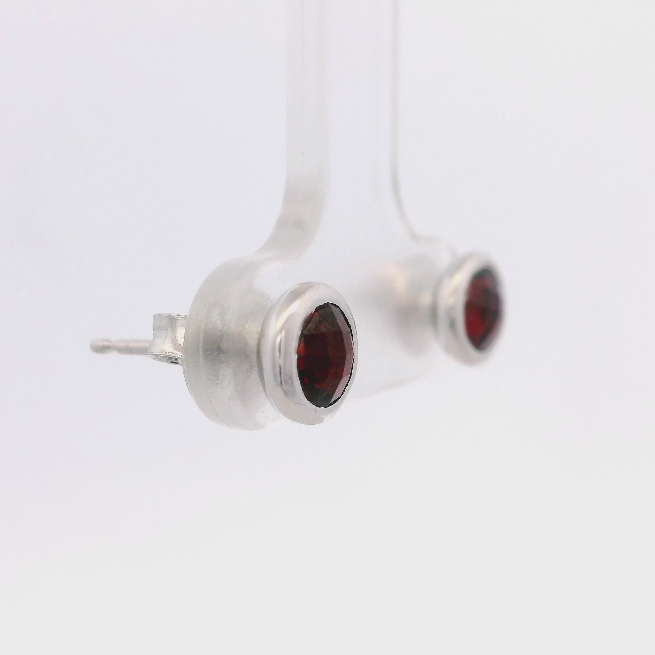 925SL BEZEL GARNET SOLITARY EARRINGS