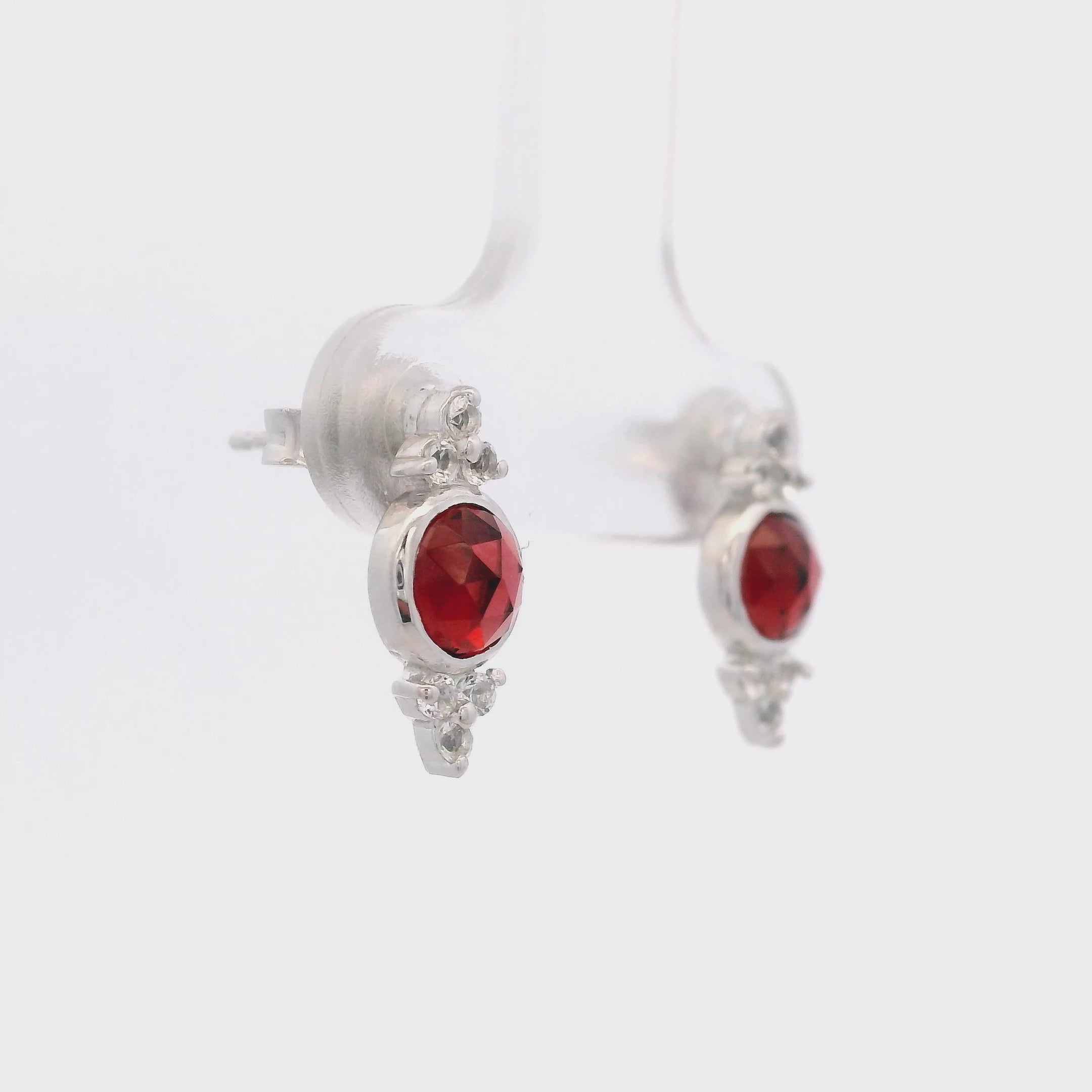 925SL BEZEL GARNET WITH POINTS TOPAZ WHITE EARRINGS