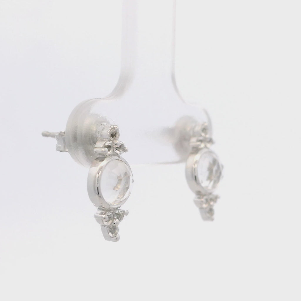 925SL BEZEL ROCK CRYSTAL WITH POINTS TOPAZ WHITE EARRINGS