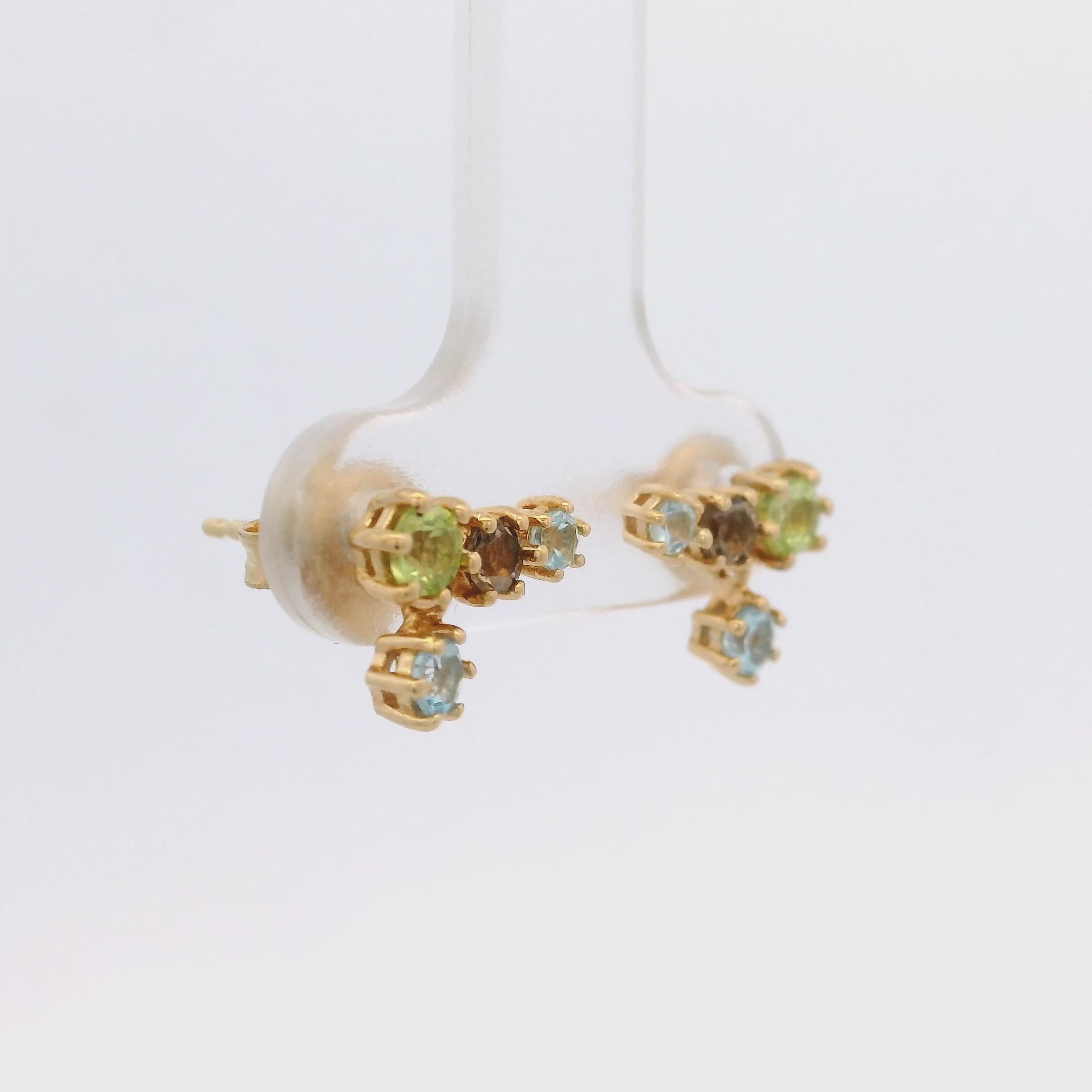 925YG BAR CURV MULTI STONE PERIDOT SMOKY QUARTZ EARRINGS - C'SANTOS