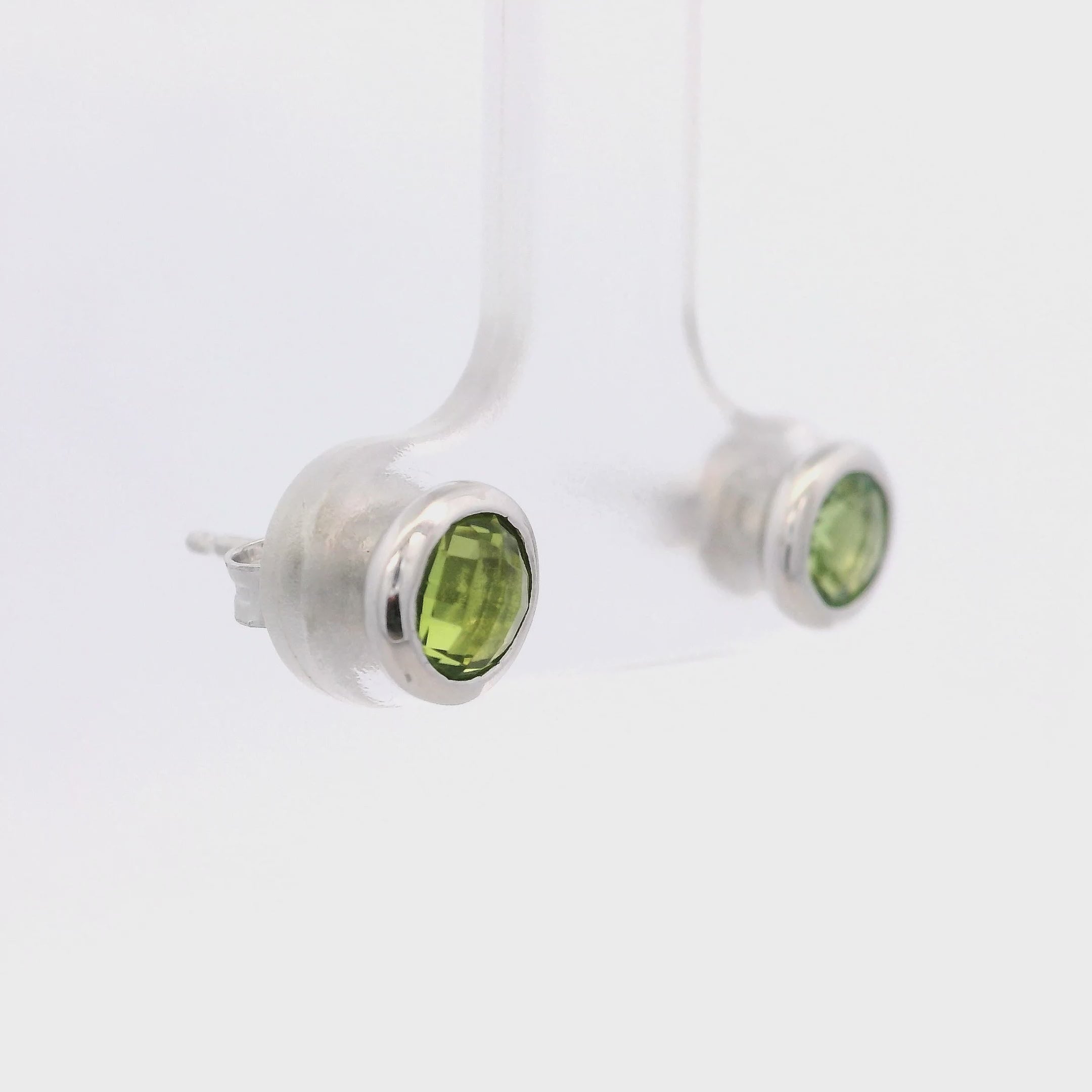 925SL BEZEL PERIDOT SOLITARY EARRINGS - C'SANTOS