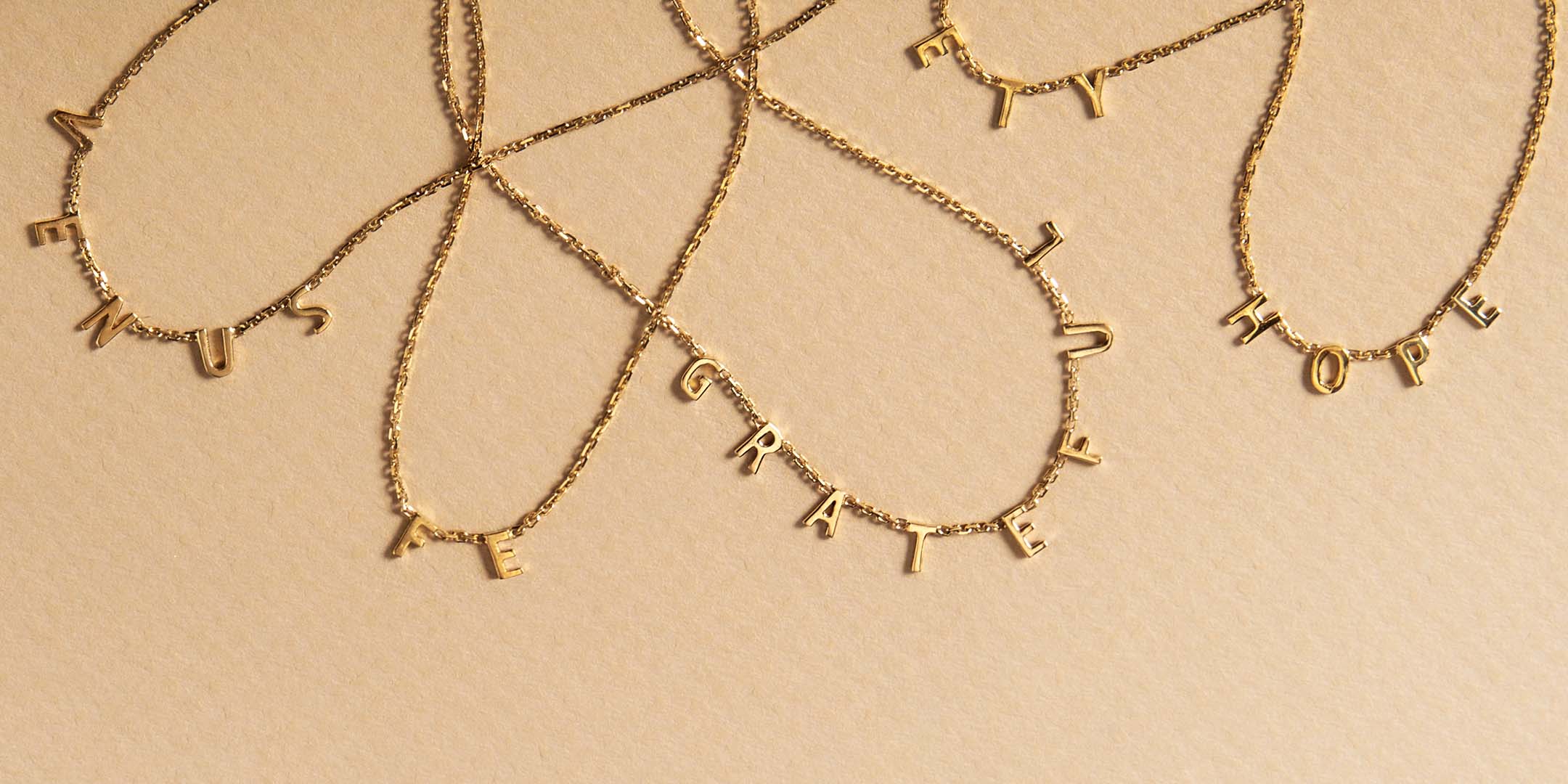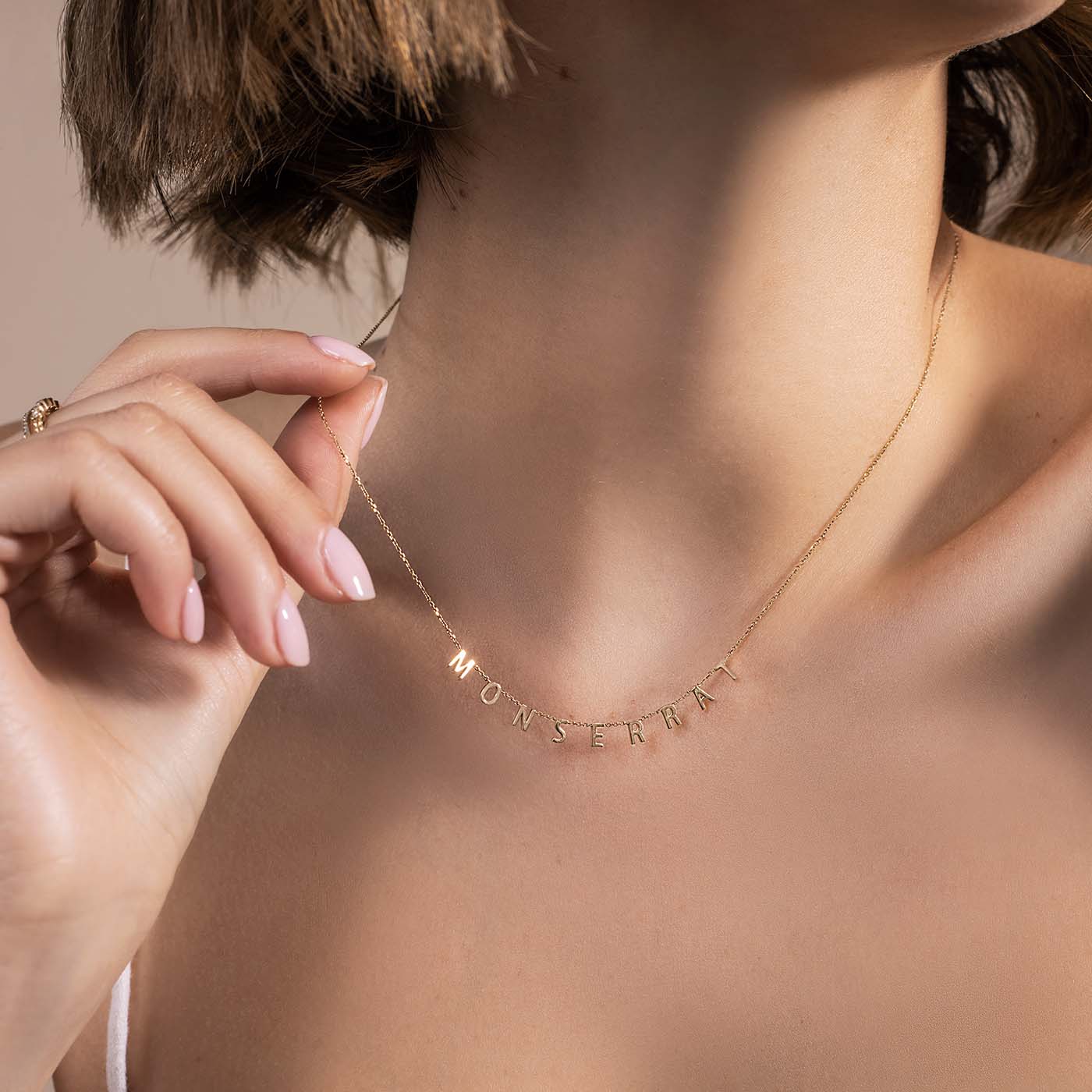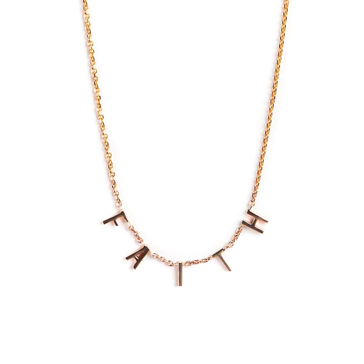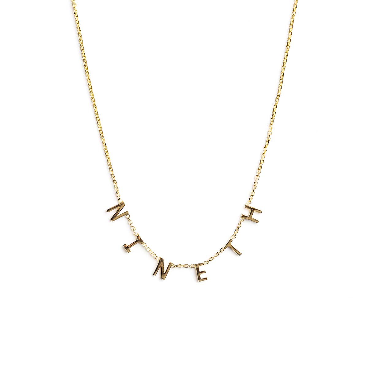 Handcrafted in 14K gold. Our delicate fine chain is strung with uppercase letters with high polish finish. You can choose between a 16” or a 18” chain.