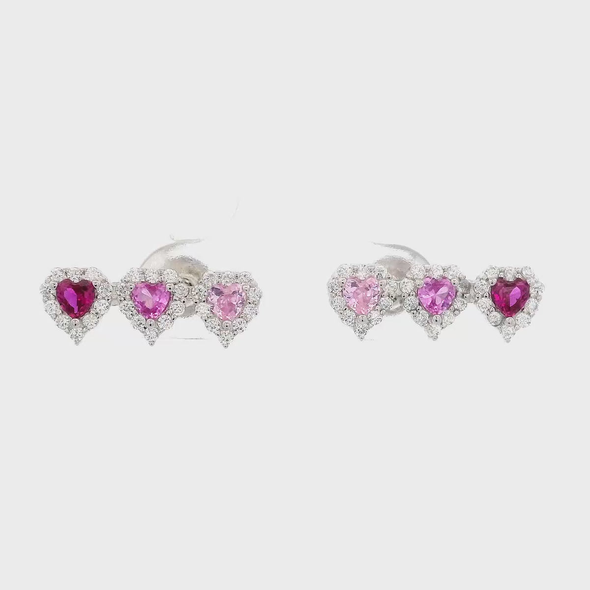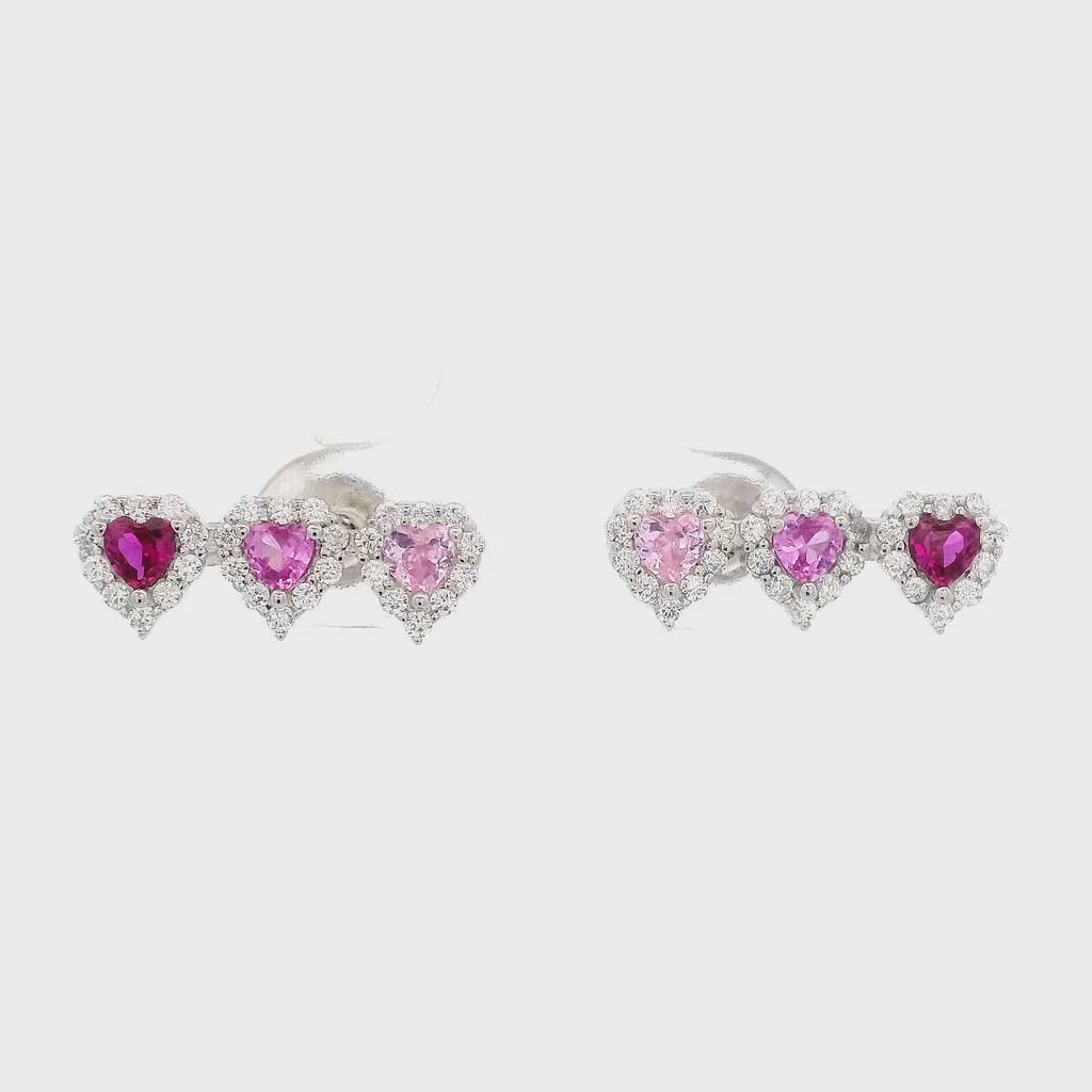 925SL TRIPLE HEART PINKISH RED CZ EARRINGS