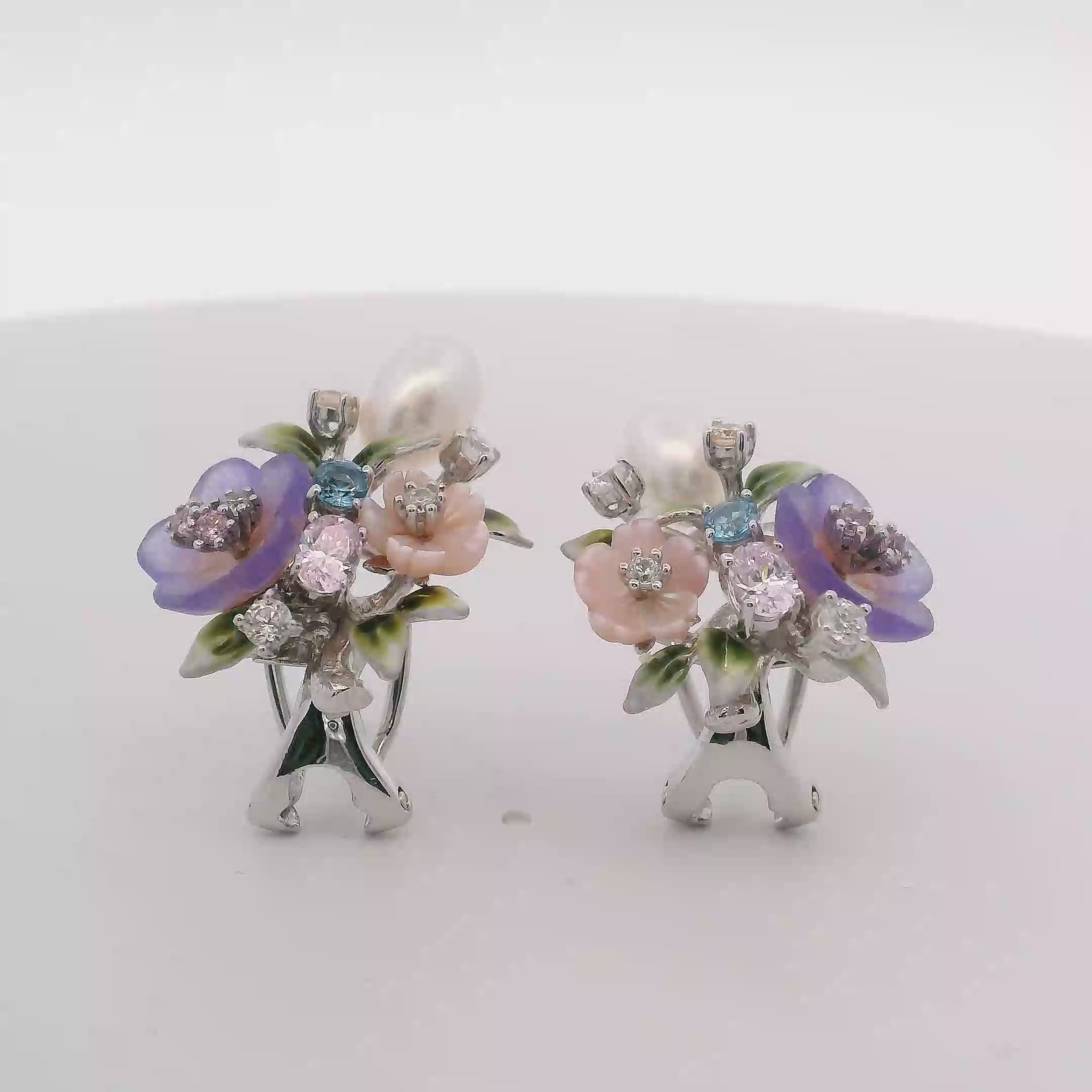 925SL CLUSTER FLOWERS PURPLE AND MIX STONE EARRINGS