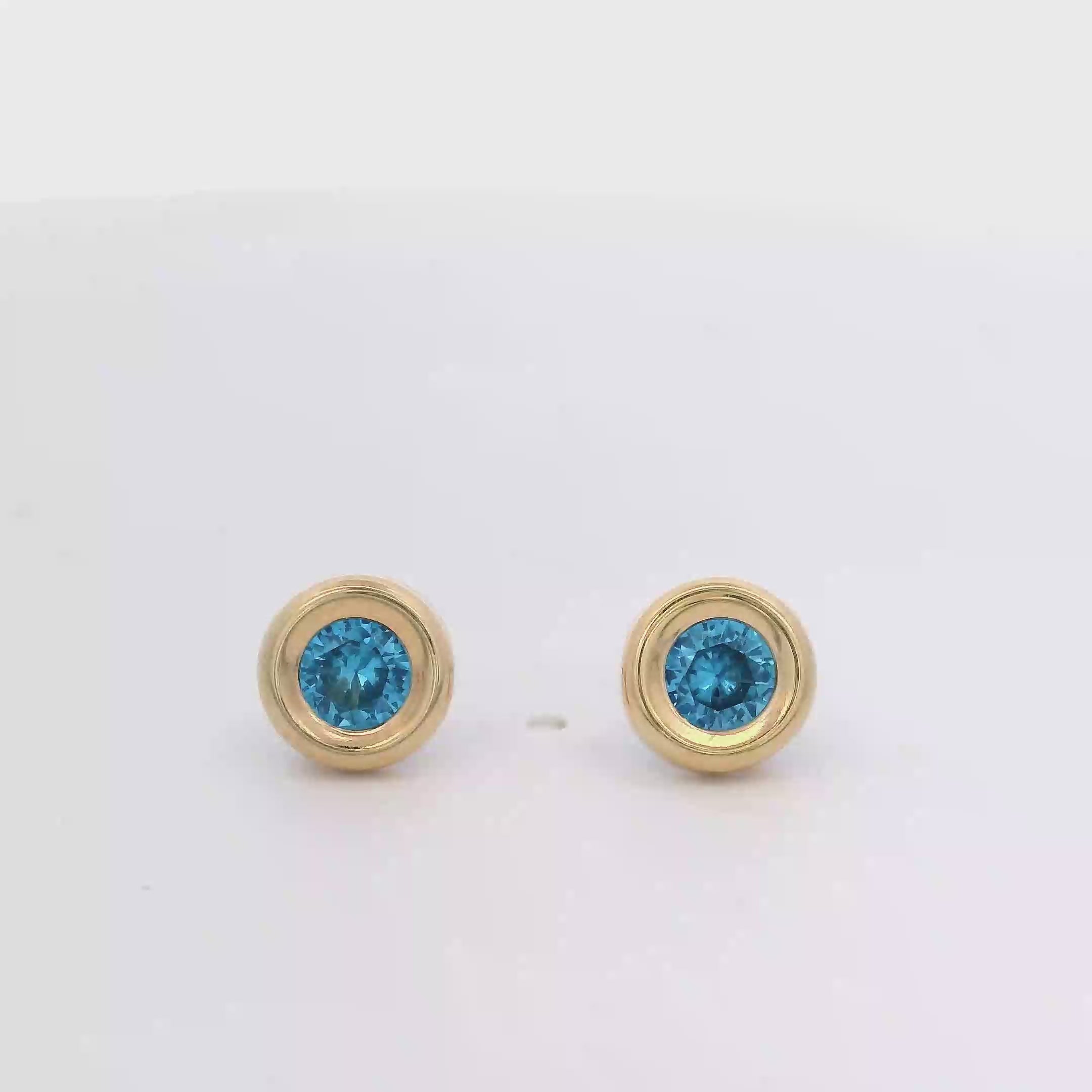 14KY BEZEL MARZO CZ AQUAMARINA EARRINGS