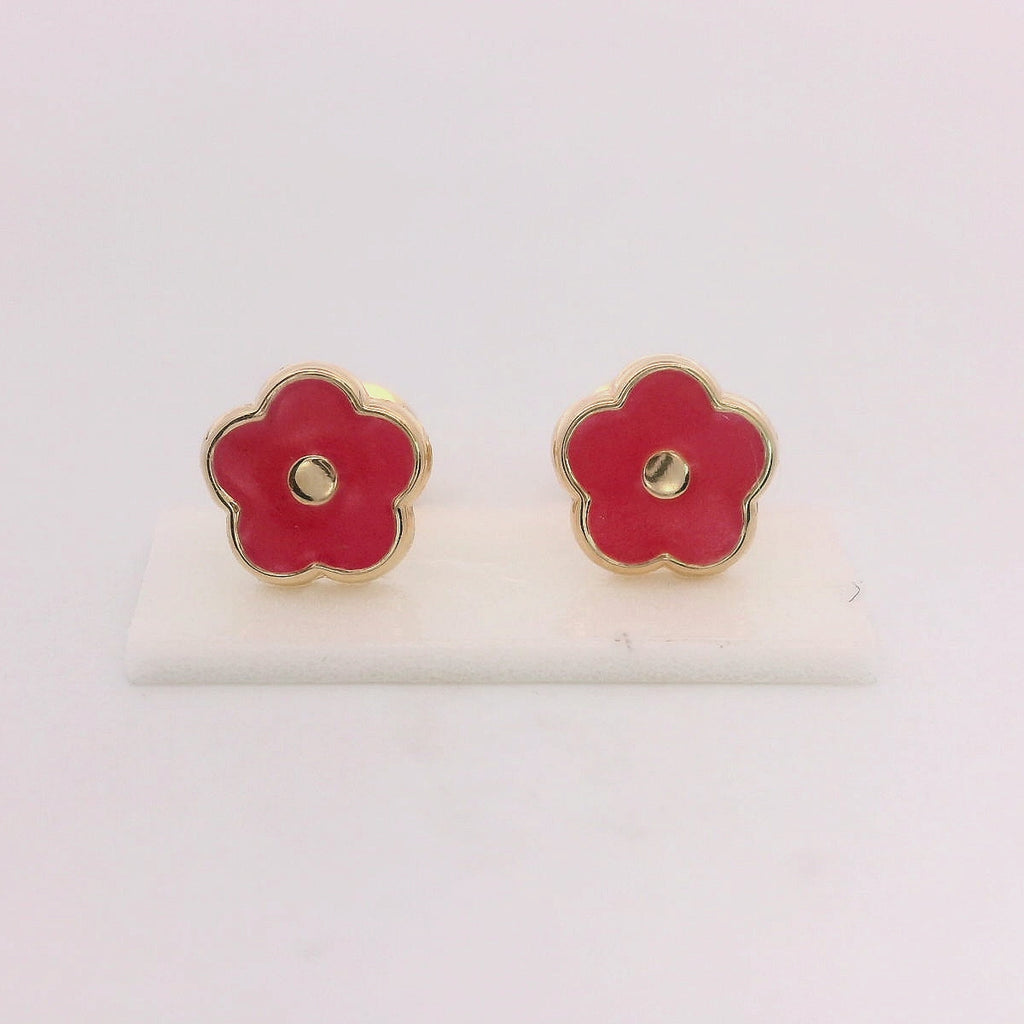 Delicately crafted in 14K yellow gold, these mini flower earrings feature a charming pink enamel finish that adds a soft, feminine touch. Their petite size makes them perfect for everyday wear, offering a subtle yet elegant accent to any outfit. Lightweight and comfortable, they are ideal for those seeking a gentle pop of color with a timeless floral design.