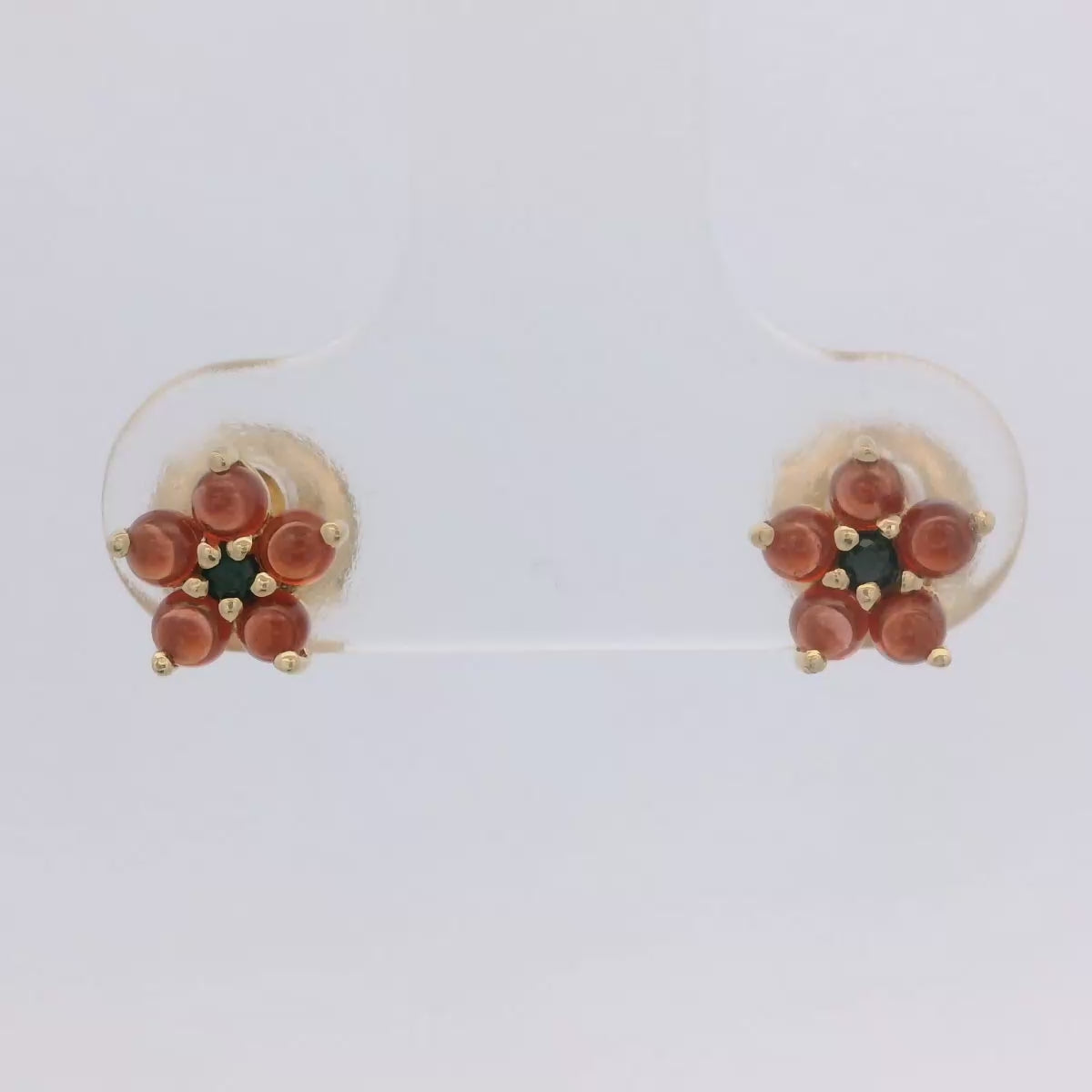 925YG FLOWER 6MM GARNET CENTER SPINEL BLACK EARRINGS