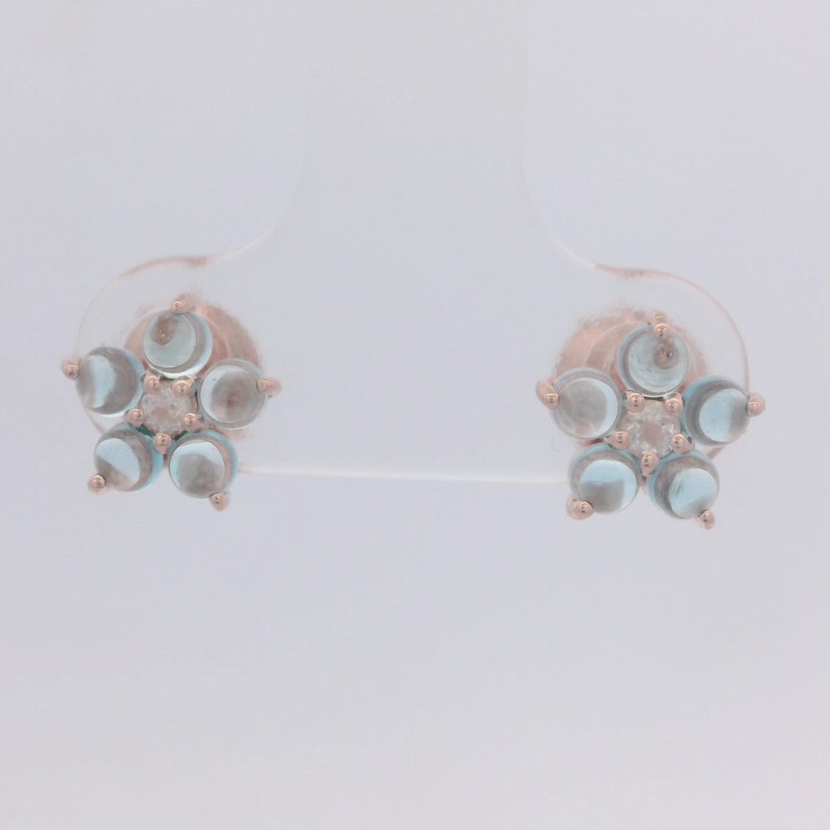 Expertly crafted with 925RG and featuring a stunning 8mm blue topaz center stone, these flower earrings are elevated by the ethereal beauty of moonstone. Delicate yet eye-catching, they add a touch of sophistication to any outfit.
