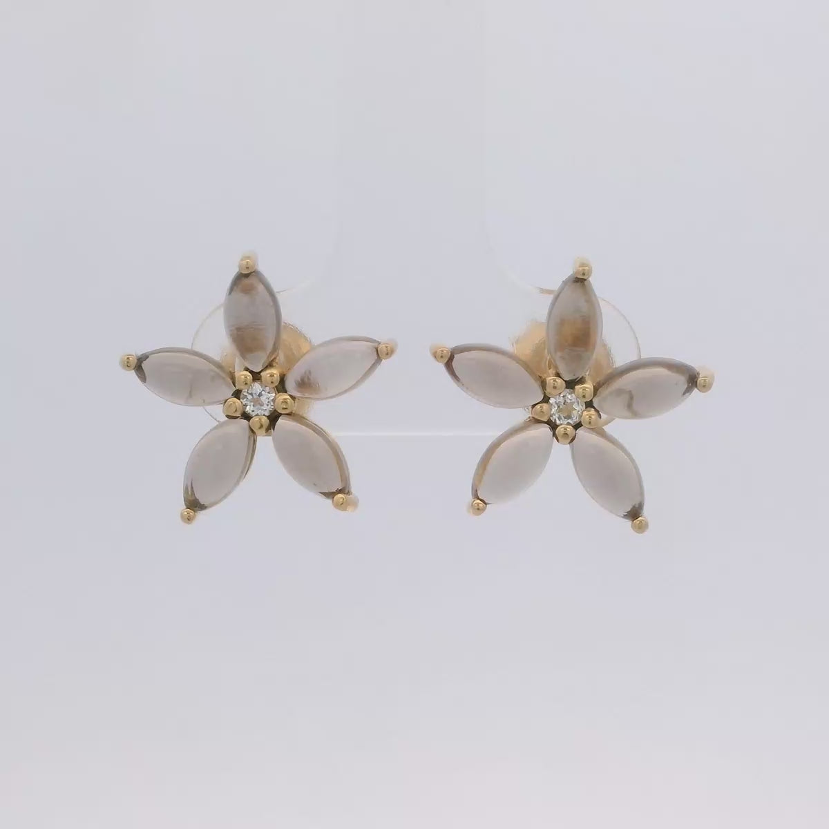 Expertly crafted with a delicate 925YG flower design, these stunning earrings feature a 15mm smoky quartz center surrounded by topaz white gemstones. Elevate any outfit with the natural beauty and elegance of these one-of-a-kind earrings.