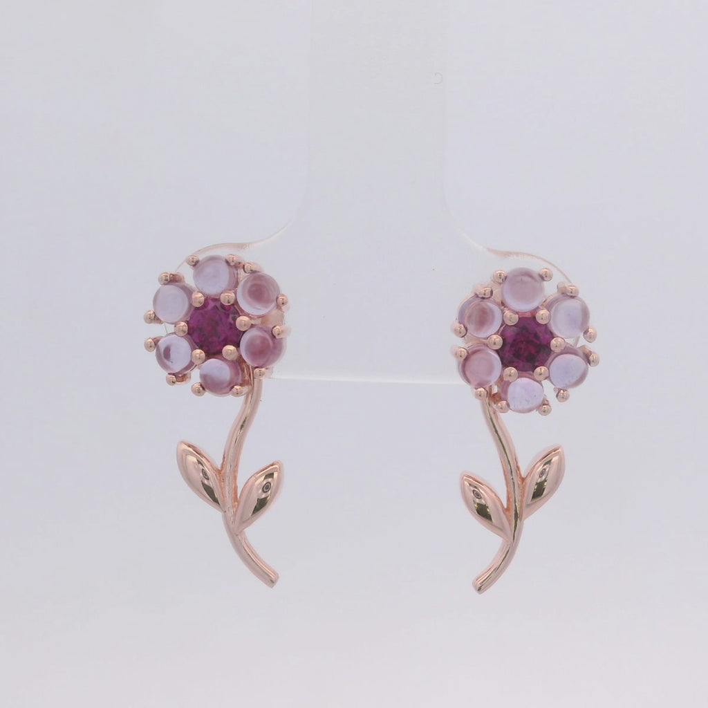 Introducing the perfect combination of elegance and versatility with our 925RG FLOWER 8MM REMOVABLE STEM AMETHYST CENTER GARNET EARRINGS. Crafted from high-quality materials, these earrings feature a stunning amethyst center and a removable stem for a customizable look. Elevate any outfit with these statement pieces.