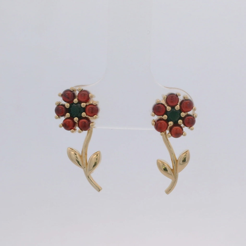 925YG FLOWER 8MM REMOVABLE STEM GARNET CENTER SPINEL BLACK EARRINGS