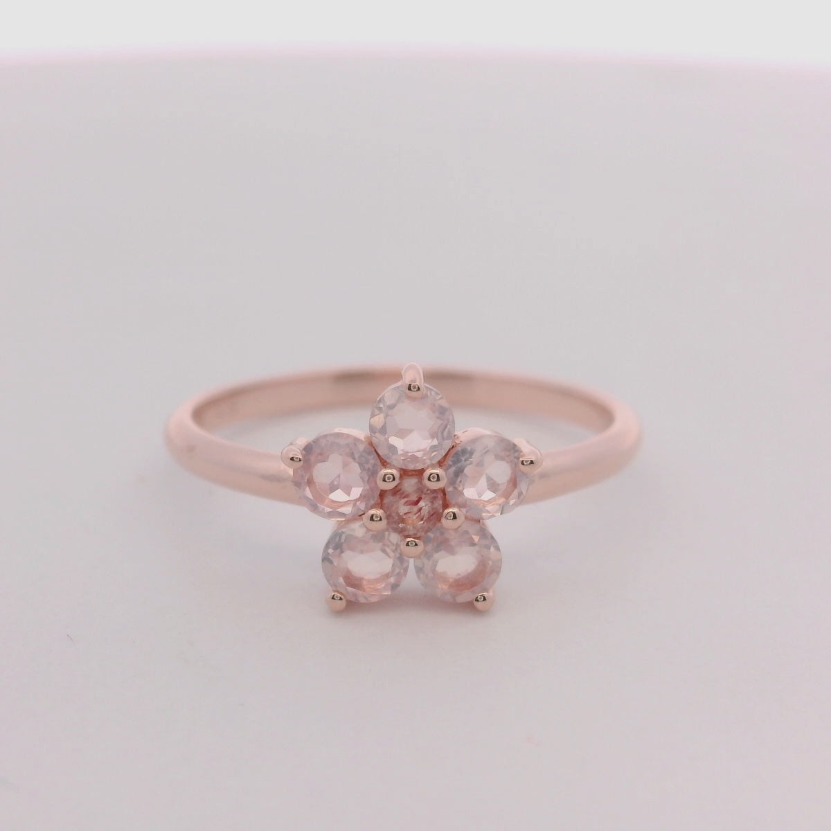 925RG FLOWER 9MM ROSE QUARTZ CENTER STRAWEBERRY PINK RING T6.5