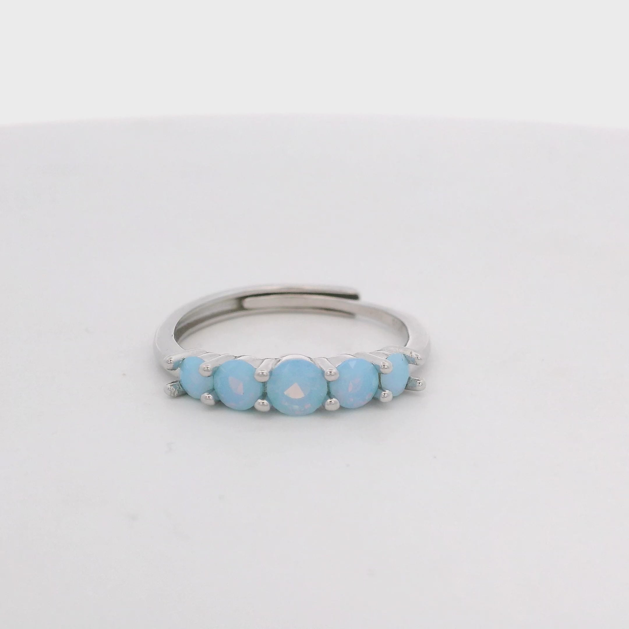 925SL FIVE STONE CZ SKY BLUE ADJUSTABLE RING