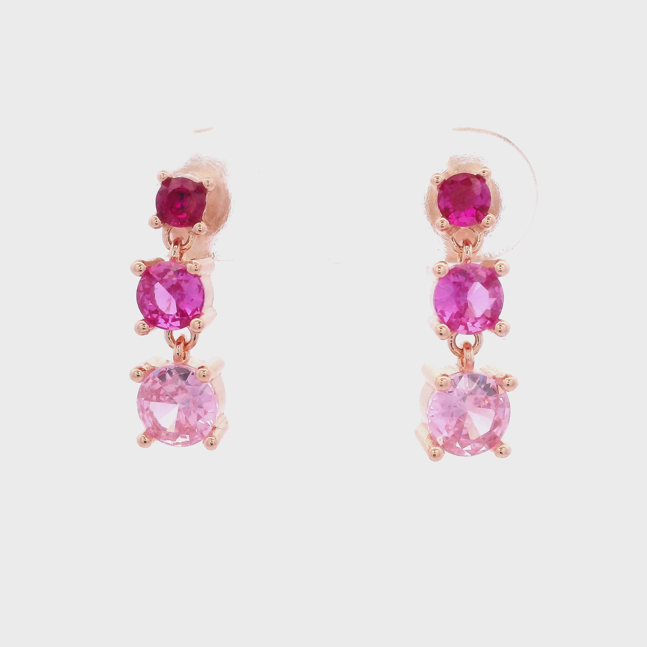 Elevate your elegance with these 925 rose gold triple stone fuchsia earrings. Featuring three vibrant fuchsia stones set in lustrous rose gold, they offer a refined touch of color and sophistication. Perfect for adding a subtle yet striking accent to any ensemble.
