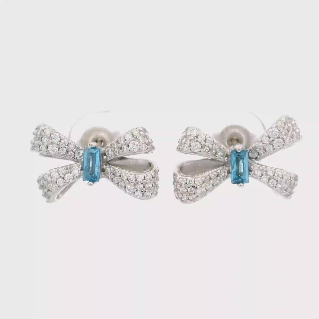 925SL SMALL BOW PAVE CENTER CZ BLUE EARRINGS