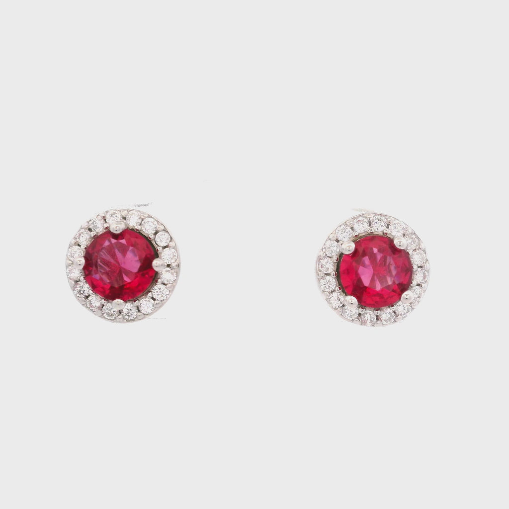 925SL HALO CENTER CZ RED EARRINGS