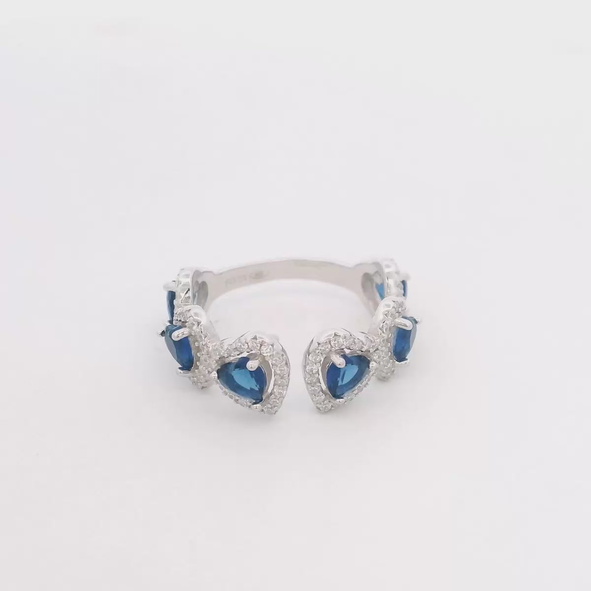 925SL OUTLINE HEART STUD CZ BLUE OPEN RING T7