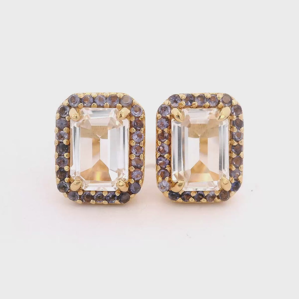 925YG BAQUETTE TOPAZ WHITE AROUND IOLITE EARRINGS
