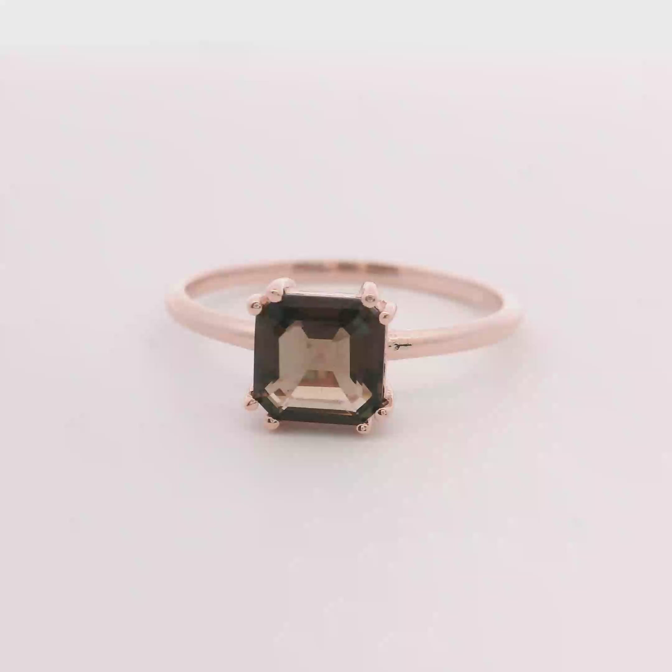 This 925 rose gold ring features a 7mm cushion-cut smoky quartz set in a classic solitary design. Its warm, earthy tones bring a subtle elegance to any look, while the comfortable fit ensures it can be worn daily. A timeless piece that supports your style with understated beauty.