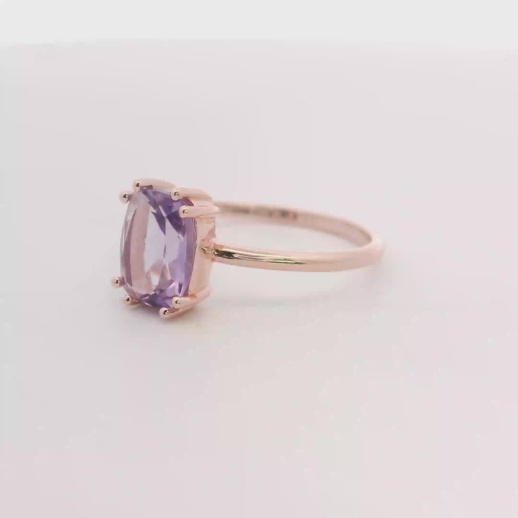 Elevate your elegance with this stunning 925RG Solitary Baguette Amethyst Ring. Featuring a vibrant 9mm amethyst centerpiece set in refined rose gold, it offers a timeless sparkle that enhances any outfit. Perfect for adding a touch of sophistication and color to your collection, this ring combines classic design with modern charm for everyday wear or special occasions.