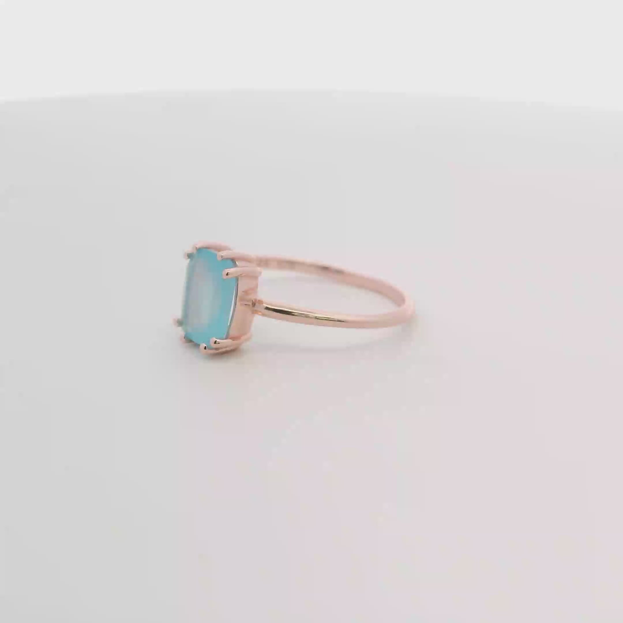 Elevate your style with this exquisite 925RG Solitary Baguette Chalcedony Blue Ring. Featuring a stunning 9mm chalcedony stone set in radiant rose gold, this ring offers a perfect blend of elegance and modern charm. Its sleek baguette cut enhances the stone’s natural beauty, making it an ideal accessory for any occasion. Designed for comfort and sophistication, this size 6.5 ring adds a subtle yet captivating splash of color to your jewelry collection. Make a lasting impression with this timeless piece.