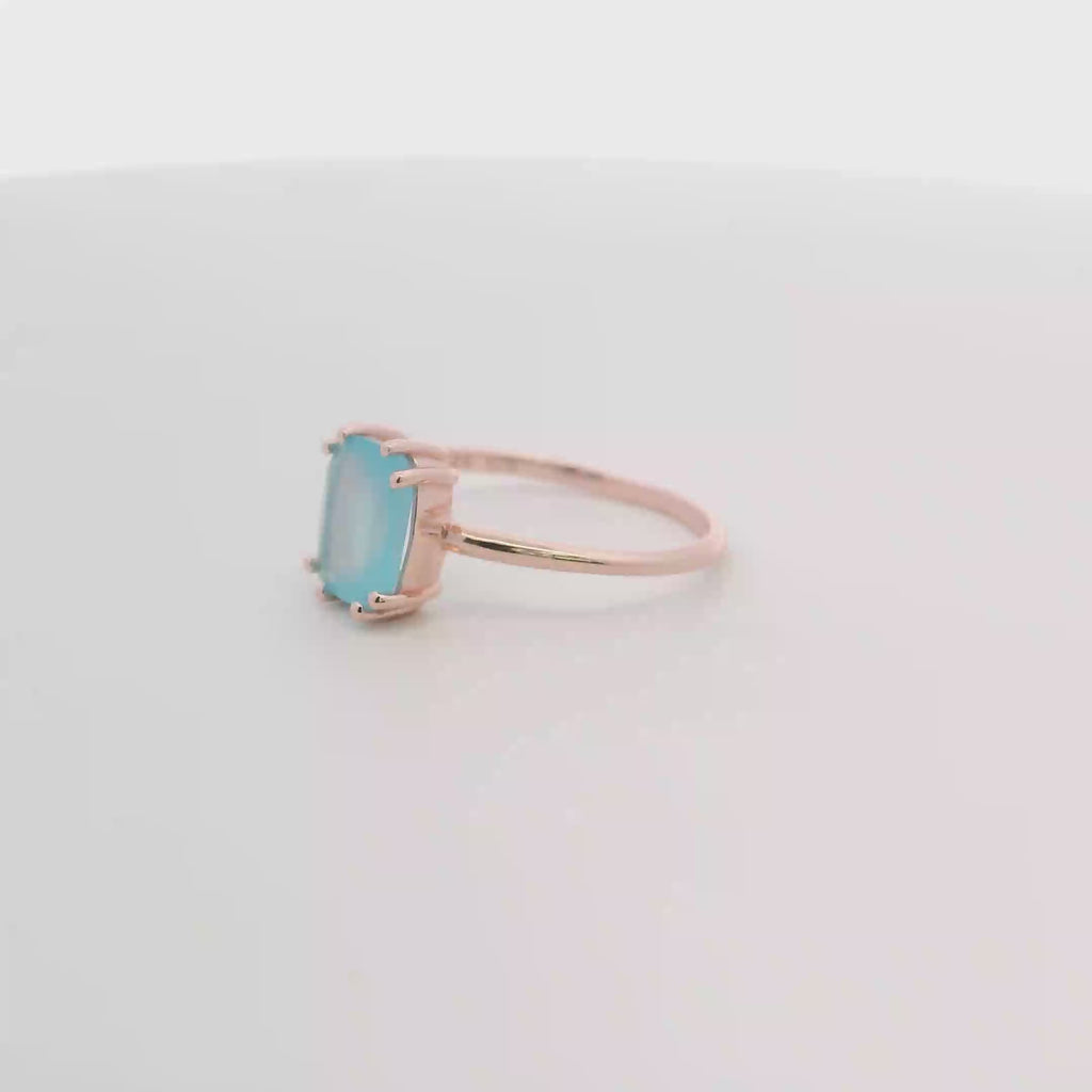 925RG SOLITARY BAGUETTE CHALCEDONY BLUE 9MM RING T6.5