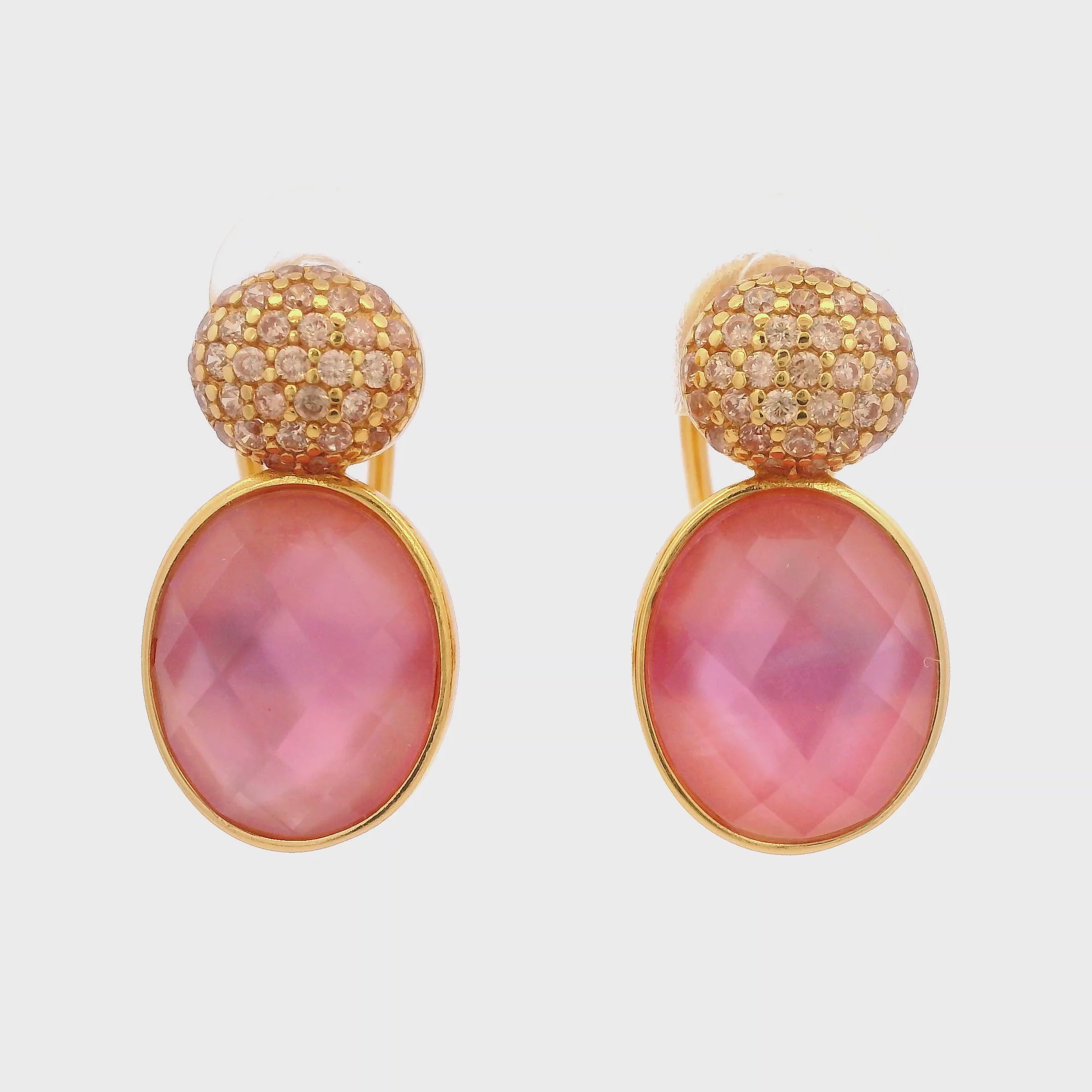 925YG DOUBLE ROUND EARRINGS QUARTZ ROSE & CZ