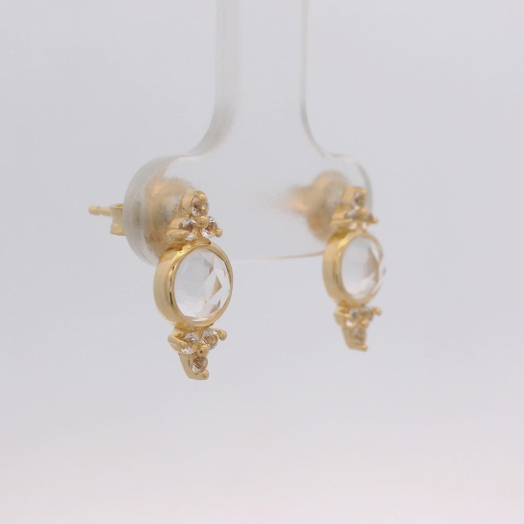925YG BEZEL ROCK CRYSTAL WITH POINTS TOPAZ WHITE EARRINGS