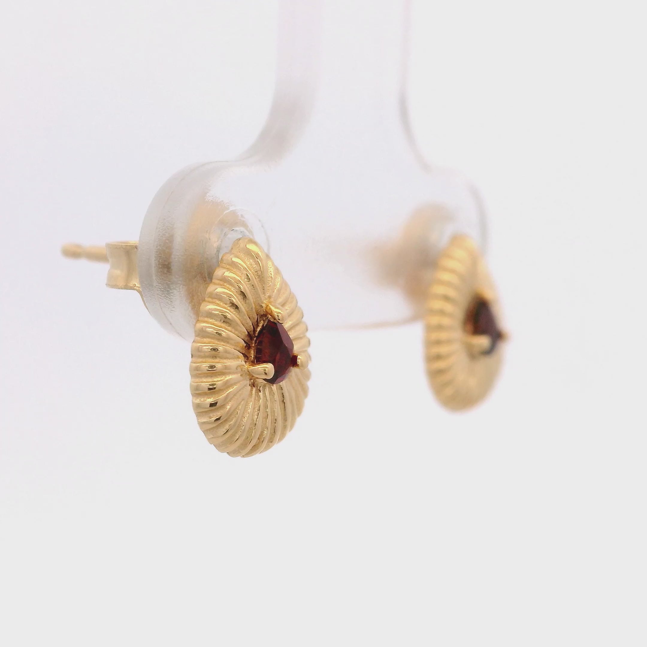 925YG DROP TEXTURE CENTER GARNET EARRINGS