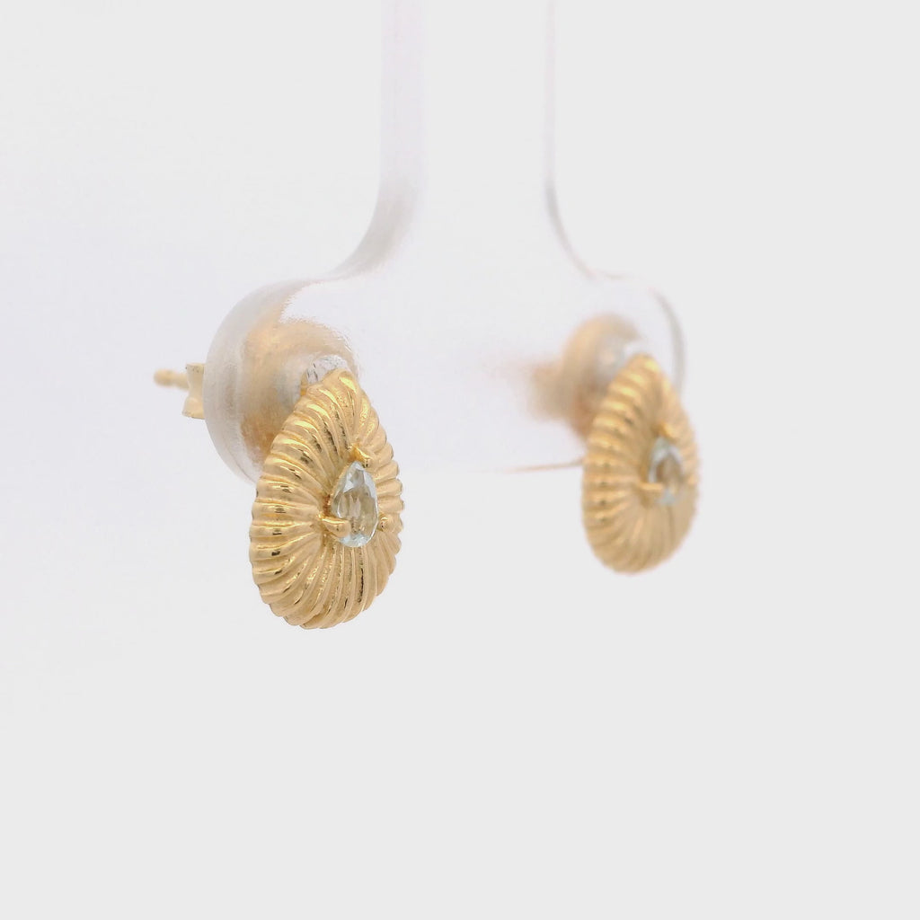 925YG DROP TEXTURE CENTER TOPAZ BLUE EARRINGS