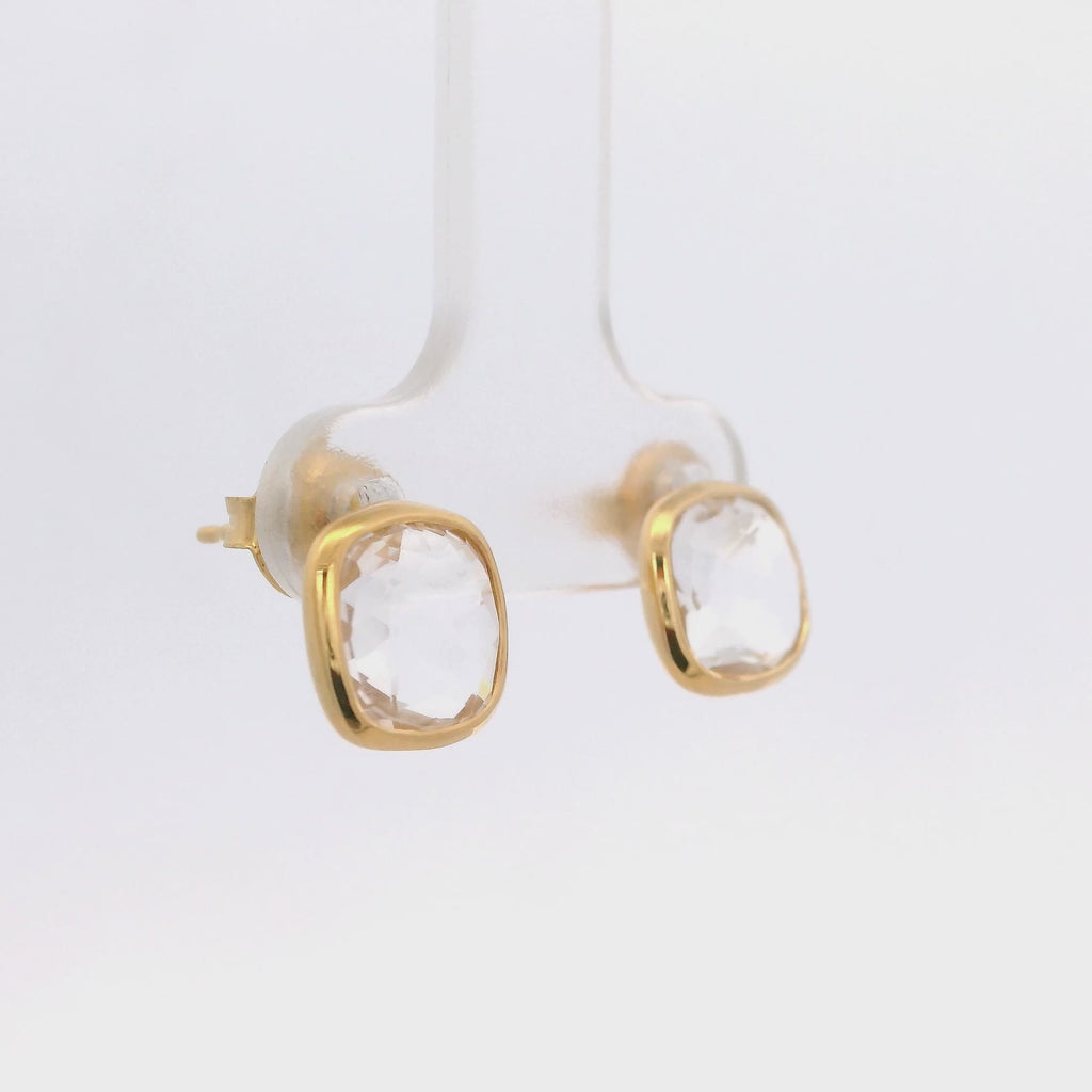 Aretes Cuadrados de Cristal de Roca en Plata 925 Bañada en Oro.