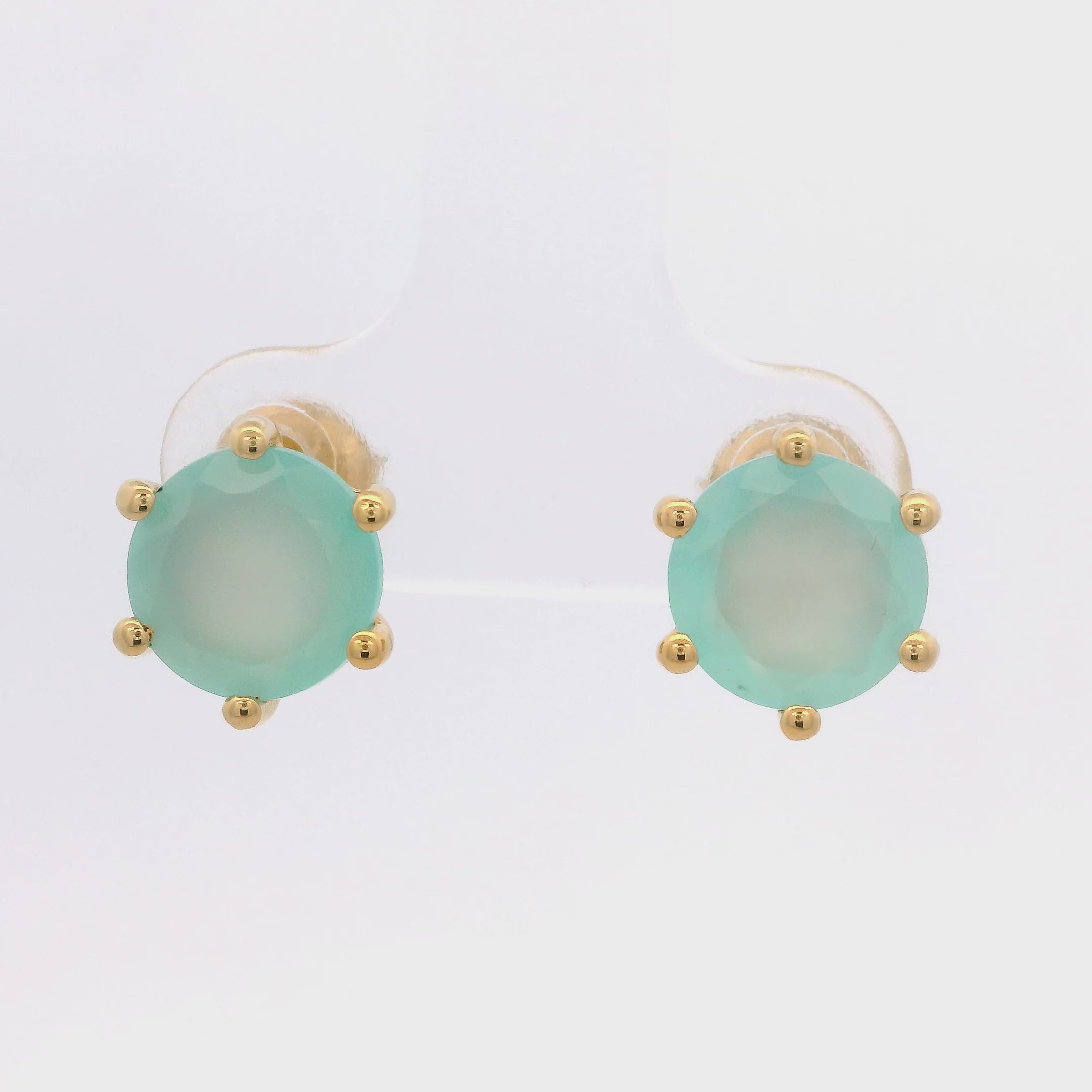925YG ROUND AQUA CHALCEDONY SOLITARY EARRINGS