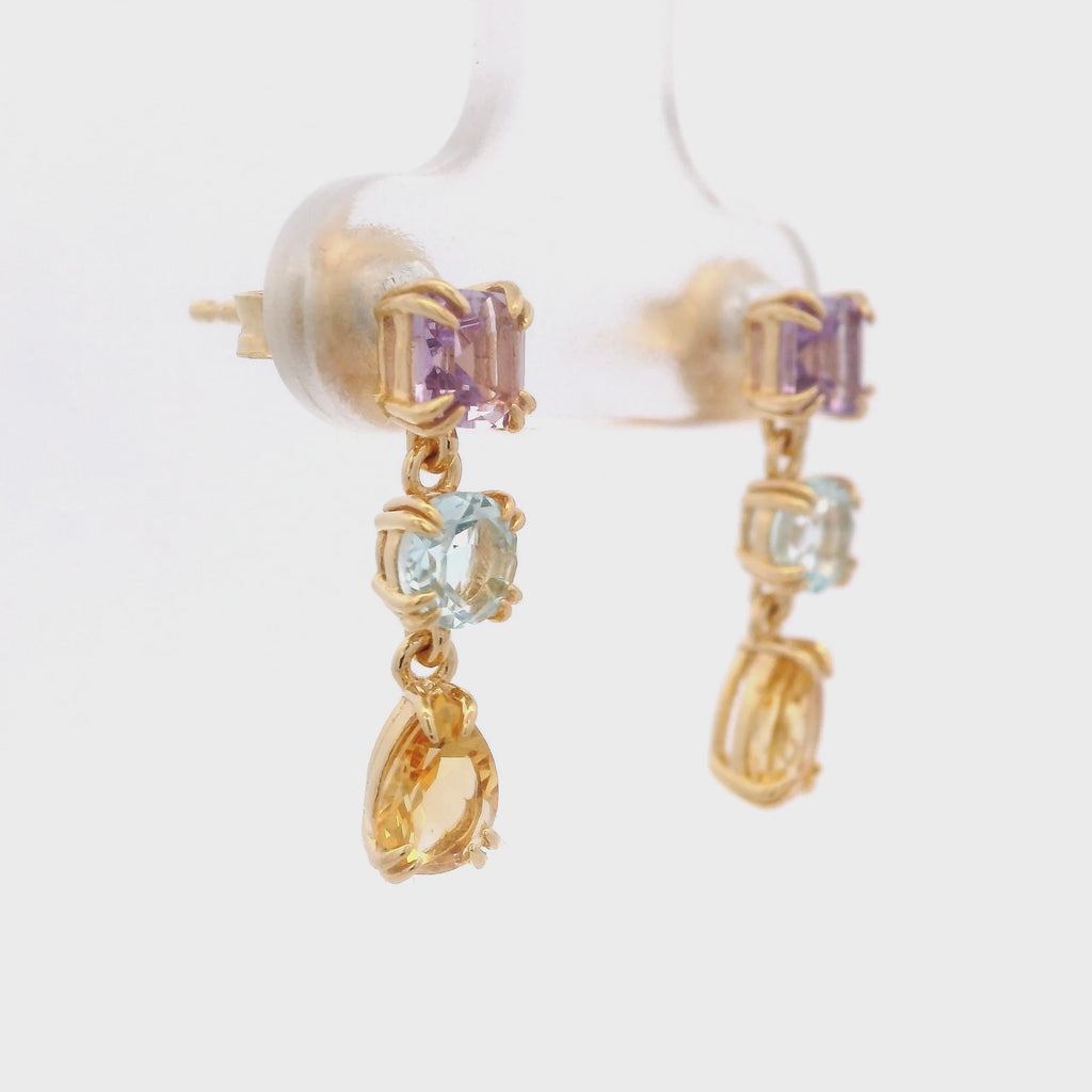 925YG MULTI SHAPE AMETHYST TOPAZ BLUE AND CITRINE EARRINGS