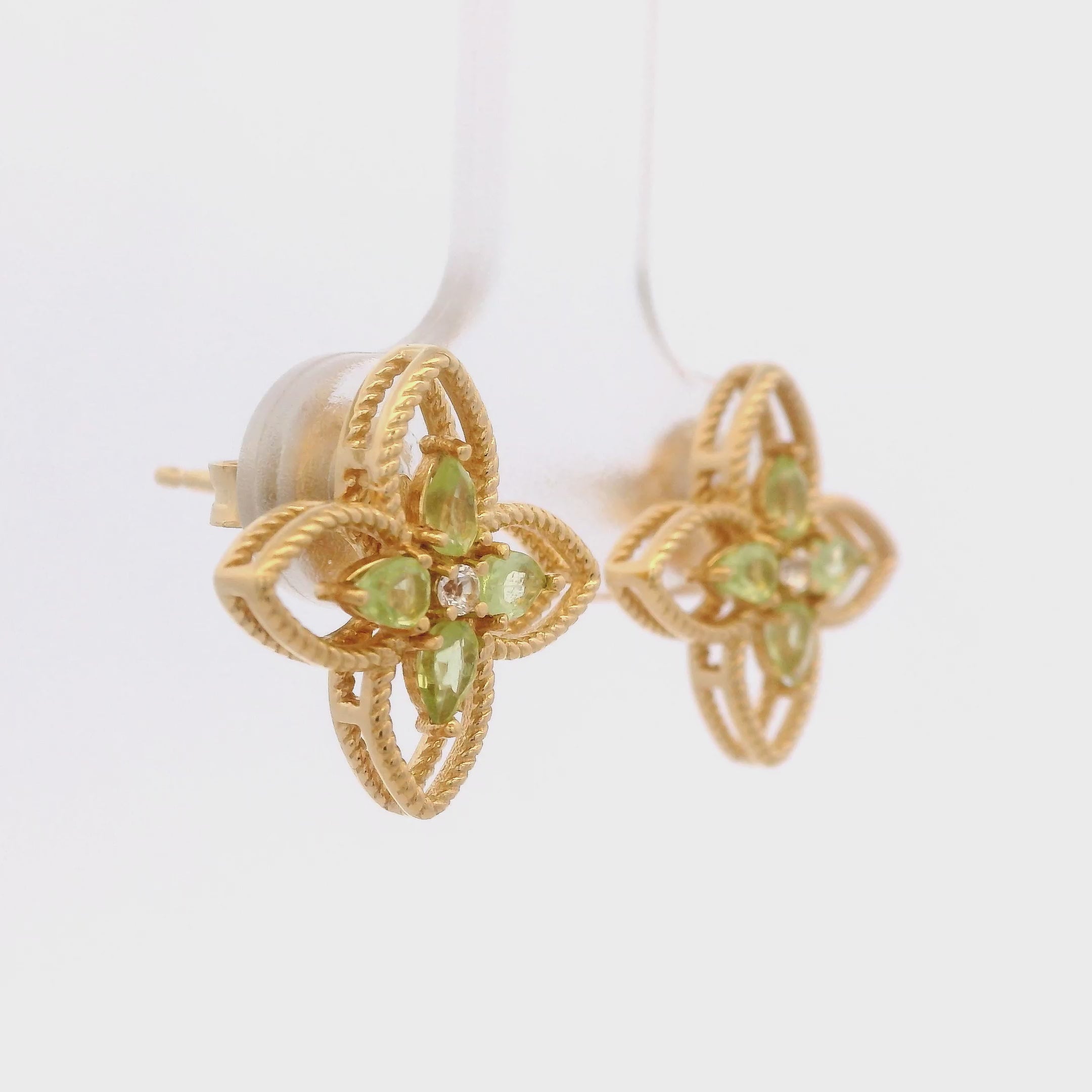 Aretes de Silueta de Trébol con Peridoto en Plata 925 Bañada en Oro.