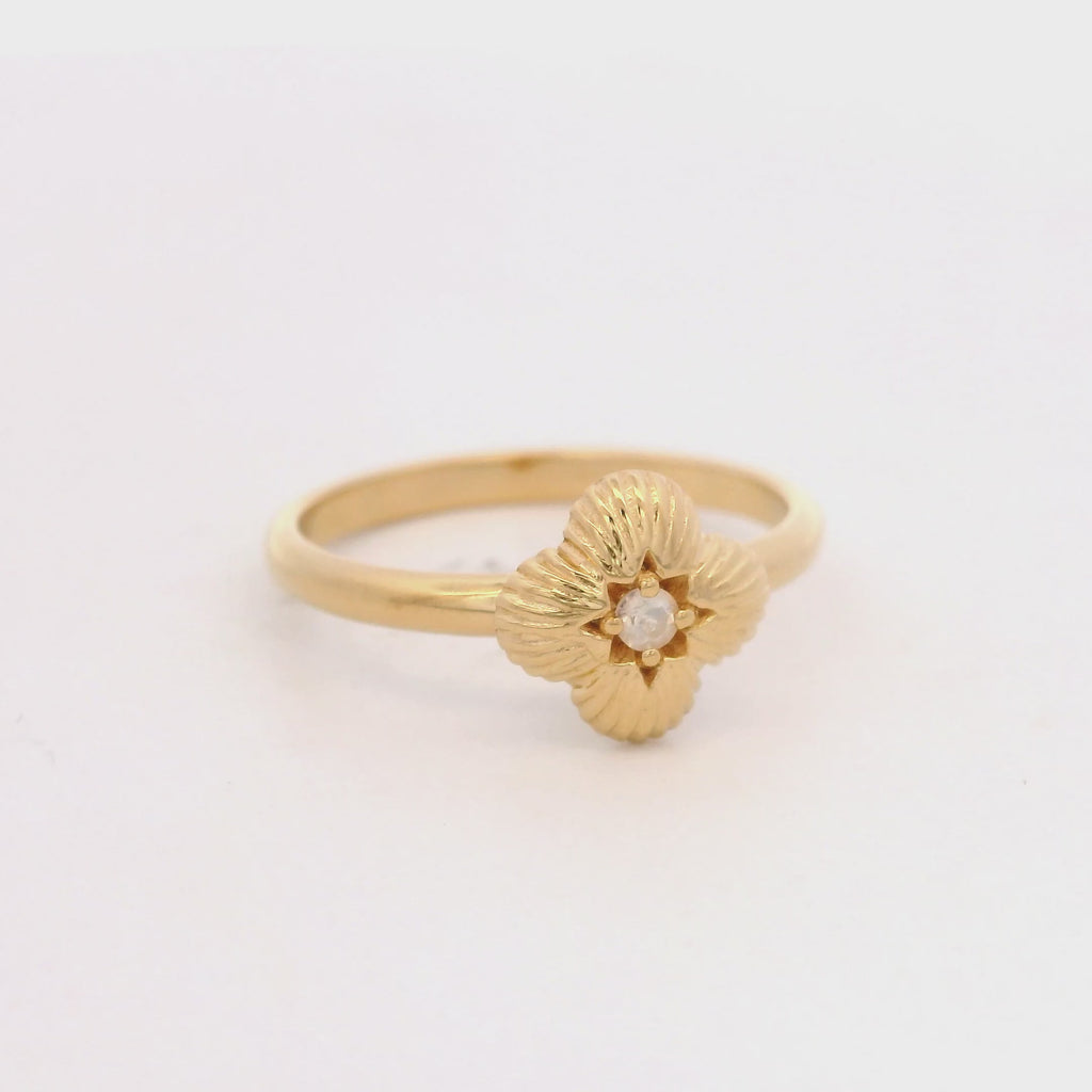 925YG TEXTURE CLOVER CENTER MOOSTONE RING T6.5