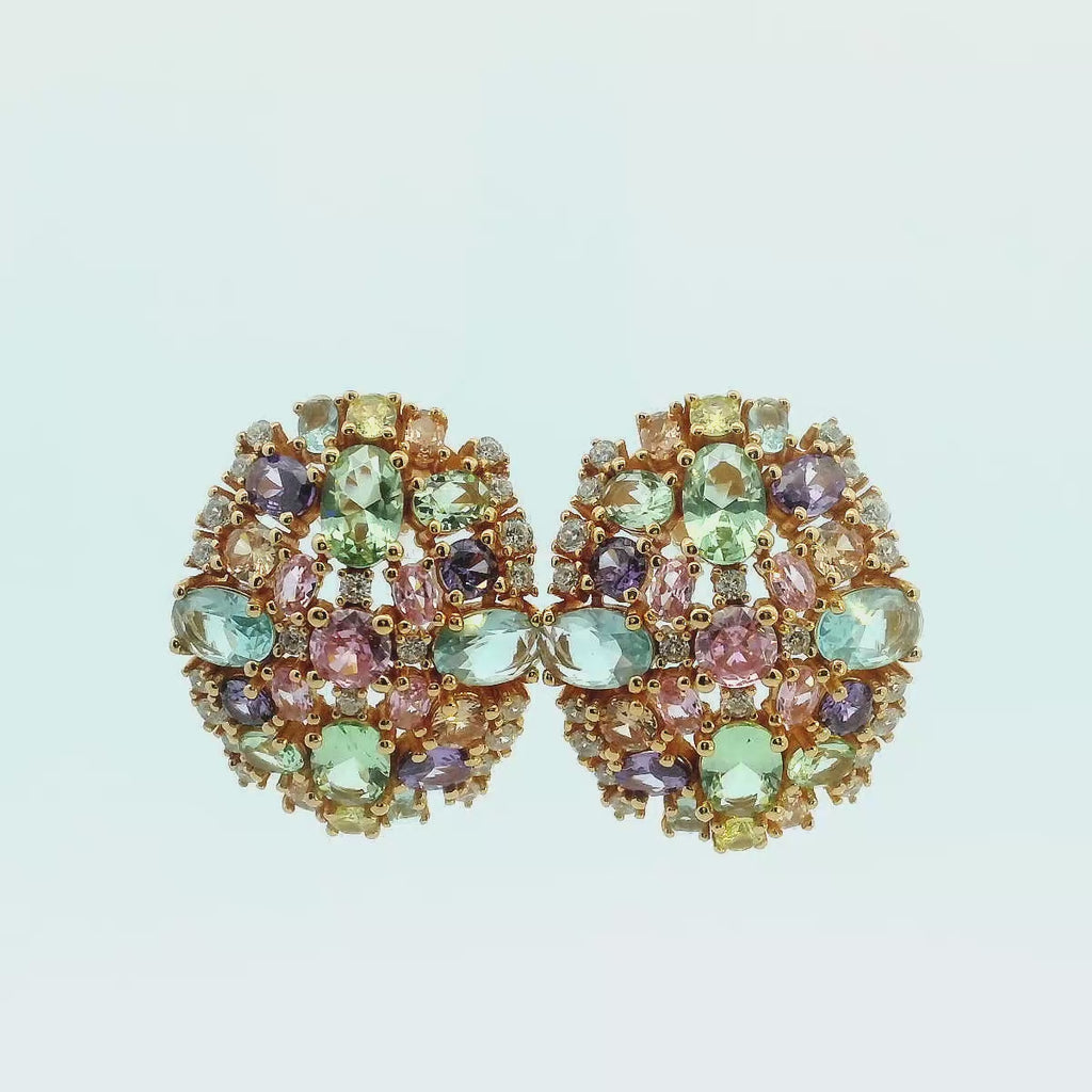 Add a pop of color to your look with these stunning dome cluster earrings. Adorned with multicolor crystals and plated in 925 gold, they will elevate any outfit. Comfortable butterfly backs make them easy to wear for any occasion.