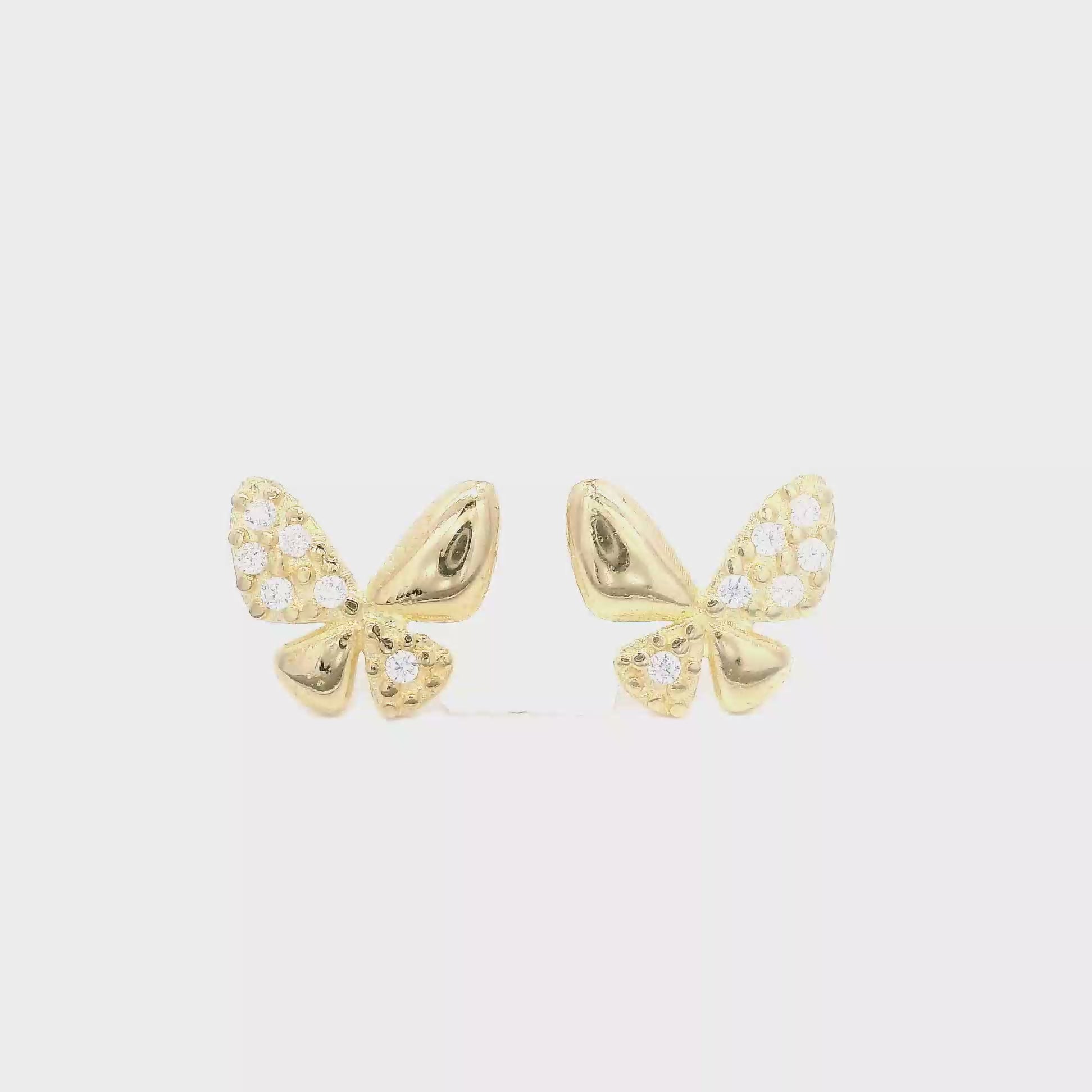 Add a touch of elegance and playfulness to your outfit with our 14KT yellow gold butterfly earrings. These 7mm studs are secured with a simple ball closure for a comfortable and stylish fit. Perfect for every occasion.